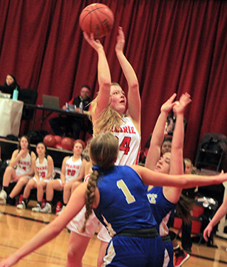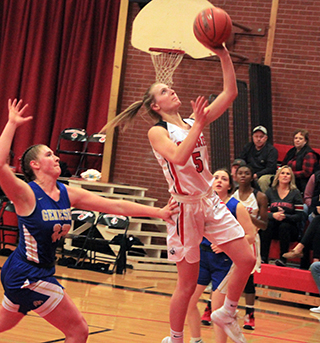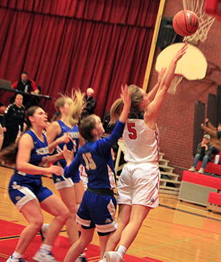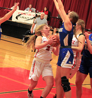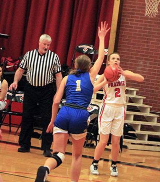 ![]() It was a streaky first half. Genesee scored first but Prairie answered with 2 baskets by Ellea Uhlenkott and 2 free throws by Madison Shears for a 6-2 lead. Genesee answered with a 0-8 run to take a 6-10 lead. Prairie then ended the first quarter with an 8-1 run to take back the lead at 14-11 by the end of the period. A steal by Hope Schwartz led to 2 free throws then Genesee scored a free throw. Kristin Wemhoff scored twice to put Prairie back on top and Shears closed out the quarter with a lay-up. Shears opened the second quarter with a free throw then Genesee took back the lead with a 3-pointer and another basket. Shears put Prairie back on top with a short bank shot and added a free throw for a 3-point play. Delanie Lockett scored a free throw to make it 19-16 with 4:26 left in the half. Prairie then went cold on offense and Genesee scored 6 straight points to take a 19-22 lead. Uhlenkott broke a nearly 3 minute dry spell with 2 free throws and the stole the ball and fed to Laney Forsmann for a basket to put Prairie back on top 23-22. Genesee closed the half with a 1-4 run to take a 24-26 lead at the break. Prairie was 0 for 9 from 3-point range in the first half but turned that around to open the second half. Within the first 1:06 of the second half Shears and Lockett each sank a 3-pointer to put Prairie up 30-26. Genesee scored a basket and a free throw to pull back within 1 but Prairie then put together a 9-0 run. Lockett started it with a basket and Uhlenkott followed with a 3-pointer. Wemhoff then scored a pair of baskets to make it 39-29 with 1:08 left in the quarter. Genesee broke the run with a basket but Shears closed out the quarter by putting back her own miss to make it 41-31. Wemhoff opened the fourth quarter with a drive to the hoop for a 43-31 lead. 24 seconds later Genesee scored their only points of the fourth quarter as Prairie finished the game with an 8-0 run. Lockett hit a 3, Wemhoff a lay-up, Shears the front end of a 1 and 1 and Wemhoff a pair of free throws as Prairie advanced to the District Championship game with an 18-point win. Shears scored 14 points to lead the scoring while Wemhoff scored 12 and Uhlenkott 11. Lockett scored 9, Forsmann 3 and Schwartz 2. Schlader didn’t score but had 11 rebounds, 4 steals and 3 assists to lead the team in all those categories. Lockett added 10 rebounds as Prairie had a 43-27 advantage on the boards. Wemhoff and Uhlenkott each had 3 steals and 3 assists. Prairie was 16 for 43 from the field, 37%, and 13 for 26 at the line, 50%. Genesee was 11 for 45 from the field, 24%, and 10 for 14 at the line, 71%. Prairie 14 10 17 10 -51 Genesee 11 15 5 2 -33 Prairie-Lockett 3-10, 1-2, 9; Wemhoff 5-10, 2-11, 12; Shears 4-15, 5-7, 14; Uhlenkott 4-7, 2-2, 11; Schlader 0-1, 0-0, 0; Schwartz 0-1, 2-2, 2; Forsmann 1-1, 1-2, 3; Prigge 0-0, 0-0, 0; Johnson 0-1, 0-0, 0. 3-pointers-Lockett 2, Shears, Uhlenkott. Genesee-Ranisate 5-8, 2-4, 12; Monk 2-8, 2-2, 7; B. Leseman 0-7, 4-6, 4; Osborne 3-15, 0-0, 6; Mayer 0-4, 0-0, 0; Stout 1-3, 2-2, 4; Holmes 0-0, 0-0, 0; Lockler 0-0, 0-0, 0; Vestal 0-0, 0-0, 0; R. Leseman 0-0, 0-0, 0. 3-pointers-Monk. Dist. Championship vs.