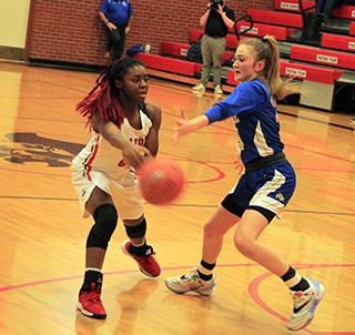 35 seconds into the game Shears sank a 3-pointer. Wemhoff followed with a putback to make it 5-0. 2 free throws by Shears and a lay-up by Wemhoff gave Prairie a 9-0 lead. ![]() Genesee finally scored on a 3-pointer at the 3:38 mark. Prairie came right back with a 6-0 run. Uhlenkott made 2 free throws, Wemhoff scored inside and Schlader added 2 free throws to make it 15-3. After a Genesee free throw, Lockett closed out the first quarter with a basket to make it 17-4. Genesee had made just 1 of 12 shots from the field while Prairie was going 6 for 7 at the free throw line. The one downside and possible hangover from the previous night was foul trouble as Wemhoff picked up her third foul with 2:12 left in the first quarter and Lockett and Shears both picked up their third fouls midway through the second quarter. Prairie built a 25-10 lead in the second quarter with 3:51 left just after Schlader went to the bench with her third. Genesee then had back-to-back 3’s from Isabelle Monk and a free throw from Bailey Leseman to cut the lead to 25-17. Two free throws by Shears and a free throw by Molly Johnson pushed the lead back to 11. Shears then followed a Genesee basket with a free throw that made it 29-19 at the half. Genesee opened the second half with a 3 from Taylor Mayer but the Prairie took control again. Genesee scored just 2 points the rest of the third quarter. Meanwhile Uhlenkott started a 9-0 run with a drive to the hoop. A basket by Wemhoff, a 3 by Lockett and a putback by Uhlenkott made it 38-22. After a Genesee basket at the 4:23 mark, Prairie finished the third quarter with an 8-0 run. Shears hit back-to-back 3’s and the scored on an inbounds feed from Schwartz to give Prairie a 46-29 lead after 3 quarters. Genesee scored to open the fourth quarter but that 20 point deficit at 46-26 was as close as they would get. Lockett scored a basket and Shears made a steal that led to a free throw. After a Genesee basket, Laney Forsmann banked in a 3-pointer for a 52-28 lead. Genesee three times got within 21 at 52-31, 55-34 and 57-36, but Prairie answeredeach time with Forsmann making 2 of 4 at the line to finish off the scoring for a 23-point win. Shears scored 19 points to lead Prairie with Lockett and Wemhoff each scoring 9. Forsmann had 7, Uhlenkott 6, Schlader and Schwartz 4 each and Johnson 1. Prairie had a 48-37 margin on the boards with 6 players grabbing at least 7 boards. Lockett and Forsmann each had 8 while Wemhoff, Shears, Uhlenkott and Schlader had 7 each. Uhlenkott had 5 steals while Shears had 3 steals and 5 assists. Prairie was 17 for 52 from the field, 33%, and 20 for 28 at the line, 71%. Genesee was 12 for 50 from the field, 24%, and 7 for 14 at the line, 50%. Prairie is now 20-3 on the season. Prairie 17 12 17 13 -59 Genesee 4 15 5 12 -36 Prairie-Lockett 3-8, 2-2, 9; Wemhoff 4-9, 1-3, 9; Shears 4-13, 8-10, 19; Uhlenkott 2-6, 2-2, 6; Schlader 0-4, 4-5, 4; Schwartz 2-7, 0-0, 4; Forsmann 2-3, 2-4, 7; Johnson 0-1, 1-2, 1; Rehder 0-0, 0-0, 0; Klapprich 0-0, 0-0, 0; Prigge 0-0, 0-0, 0. 3-pointers-Shears 3, Lockett, Forsmann. Genesee-Ranisate 2-5, 1-2, 5; Monk 3-13, 0-0, 9; B. Leseman 1-6, 3-4, 5; Osborne 5-17, 0-4, 11; Mayer 1-5, 1-2, 4; Stout 0-4, 2-2, 2; Hanson 0-0, 0-0, 0; Lockler 0, 0-0, 0; Vestal 0, 0-0, 0; R. Leseman 0-1, 0-0, 0. 3-pointers-Monk 3, Osborne, Mayer. ![]() Delanie Lockett sites in a 3-point shot against Genesee in the District opener. She and Madison Shears each sank a 3 to open the second half and give Prairie the momentum. ![]() Ellea Uhlenkott scores a lay-up in the District opener against Genesee. Also shown is Madison Shears. ![]() Madison Shears makes a pass in the first Genesee game. ![]() Kristin Wemhoff in the lane in the first Genesee game. Also shown is Laney Forsmann. ![]() Madison Shears puts up a 3-point shot at Lapwai. ![]() Ellea Uhlenkott got inside the defense for a shot in the second Genesee game. ![]() Laney Forsmann puts up a shot in the second Genesee game. ![]() Madison Shears puts up a 3-point shot in the first Genesee game.. *indicates league game NOVEMBER