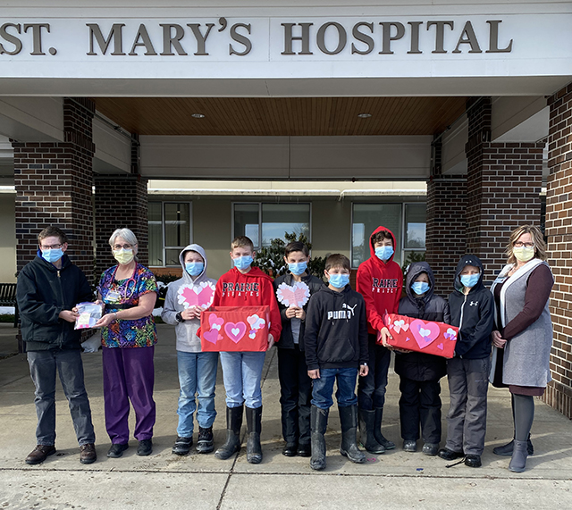 Elementary students participate in service projects Prairie Elementary Students participated in two service projects in the month of January and February. The first service project was a school wide effort. The student council headed up a “Love Thy Neighbor” fundraiser for the Heifer International Project. For more than 75 years, Heifer International has worked with people all around the world to end hunger, poverty and care for the Earth. Heifer International generally provides animals and education to participating families through local channels in the countries they serve. Heifer International was born from the simple idea of empowerment, the organization has worked tirelessly to give families a hand up, rather than just a handout. They provide services in 21 countries including the United States. The students and staff at Prairie Elementary gathered loose coins and bills, which raised $980.00! The student council purchased the following: 4 flocks of ducklings, 4 flocks of chicks, 4 sets of hives and bees, 1 goat, 1 set of piglets. They also purchased 4 hope baskets (rabbits, and chicks), and 2 dream baskets (sheep, heifer, goat, rabbits and chicks). The second service project involved the 5th and 6th graders. These students made 110 paper woven heart pockets and filled them with delicious chocolates and candies. The heart pockets were then distributed to the entire staff members at both St, Mary’s Hospital and clinic. The students wrote personal notes to tell staff members how much they appreciate them and everything they do for our community. The students also made woven hearts for the school bus drivers, office and kitchen staff, Jake Forsmann and Dave Shears. One even went to our milk deliveryman Dan! Every student and staff member joined in celebrating February, a month of gratitude, appreciation and loving thy neighbor. ![]() Prairie Elementary Student Council members Maggie Nuxoll, Lillan Rehder,Ashton Martin, Beka Schumacher and Mikayla Rowland are holding collection cans for the Heifer International Project fundraiser. Photo by Colleen Sonnen. ![]() The 5th and 6th grade health class at Prairie Elementary School presented valentines at St. Mary’s Hospital recently. Representing the hospital are Anne Fraser, RN, and Tracy Williams, Director of Nursing. The students are John Lightfield, Steel Uhlenkott,Stetson Hankins, Kane McIntire, Rylan North, Lane Mader, Kaicon Downing and Carter Frei. Photo by Prairie Elementary. |