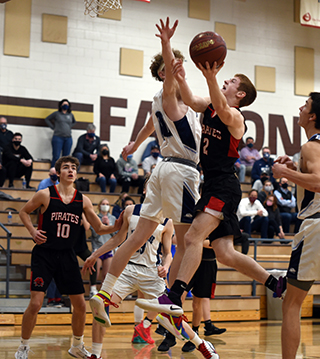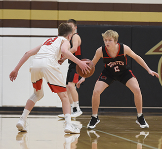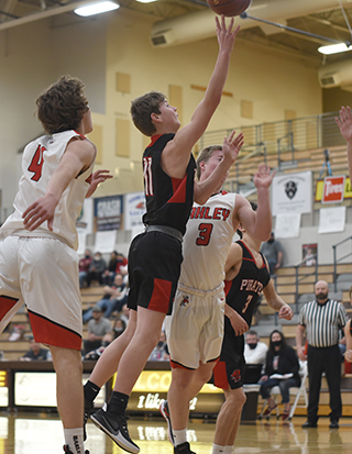 Rambo was the only one for the Pirates to come through on offense. He gave Prairie their only lead of the game when scored a lay-up off a feed from Schlader. Prairie didn’t score again until Schumacher scored his only 2 points of the game over 4 minutes later after Oakley had taken a 2-7 lead. Schlader picked up his second foul at the 3:35 mark and spent the rest of the quarter on the bench. Rambo followed Schumacher’s basket with a free throw but then Oakley scored 5 straight points for a 5-12 lead. A blocked shot by Shane Hanson led to a drive to the hoop by Hasselstrom that made it 7-12 at the end of the first quarter. Oakley opened the second quarter with a basket and Rambo answered but the Hornets then scored 9 straight to take a 23-9 lead. Rambo broke that run with a 3 pointer but Oakley answered with a pair of baskets. Schlader had come back into the game but picked up his third foul with 1:51 left in the half. A basket by Rambo, who scored all 7 of Prairie’s second quarter points, made it 14-27 at the half. Rambo opened the third quarter with a 3-pointer but Oakley scored a basket. Schlader then scored his only points of the game when he converted a 3-point play to make it 20-29 with 5:17 left in the third quarter. That was as close as Prairie got in the second half. A minute later Schlader picked up foul #4 and sat out the final 4:10 of the third quarter. Two baskets by Rambo and a basket by Ross kept Prairie within range as they trailed 26-38 after 3 quarters. Two free throws by Rambo to open the fourth got Prairie back within 10. Schlader fouled out with 6:08 left and was called for either a flagrant or intentional foul which gave Oakley 2 free throws plus the ball. They turned that into 5 points and then added another basket to go up 17. Wemhoff made a free throw to cut the lead to 16 with 4:44 left but 2-9 run quickly put the Hornets up by 23 with 2:23 to play. A 3-pointer each by Rambo and Hasselstrom got the margin momentarily back under 20 at 37-56 with 1:36 left but Oakley wound up winning by 21. Rambo had 63% of Prairie’s point total with 24 points, a season high. Hasselstrom with 5 was the next highest scorer with Schlader scoring 3, Schumacher and Ross 2 each and Wemhoff and Lee Forsmann 1 each. Oakley had a 28-30 edge on the boards. Ross and Wemhoff each had 6 to lead the Pirates. Schumacher had 4 steals and Ross had 3 assists. Prairie was 14 for 40 from the field, 35%, and 6 for 18 at the line, 33%. Oakley was 22 for 46 from the field, 48%, and 9 for 16 at the line, 56%. Cole Schlader and Zach Rambo were named honorable mentions on the Idahosports.com all-tournament team. Prairie ends their season with a 17-7 record. Prairie 7 7 12 12 -38 Oakley 12 15 11 21 -59 Prairie-Schlader 1-1, 1-2, 3; Ross 1-3, 0-3, 2; Rambo 9-18, 3-5, 24; Schumacher 1-5, 0-2, 2; Wemhoff 0-5, 1-3, 1; Hasselstrom 2-3, 0-0, 5; Schwartz 0-4, 0-1, 0; Hanson 0-1, 0-0, 0; Alfrey 0-0, 0-0, 0; Forsmann 0-0, 1-2, 1. 3-pointers-Rambo 3, Hasselstrom. Oakley-Wybenga 3-7, 0-0, 7; S. Pickett 0-0, 0-0, 0; Bedke 6-10, 2-7, `4; Beck 4-9, 6-6, 16; A. Cranney 2-8, 0-0, 5; Robinson 5-7, 0-0, 11; R. Pickett 0-0, 0-1, 0; I. Cranney 2-5, 1-2, 6; Gonzalez 0-0, 0-0, 0; Crocker 0-0, 0-0, 0; Saegers 0-0, 0-0, 0; Lara 0-0, 0-0, 0; Praegitzer 0-0, 0-0, 0. 3-pointers-Beck 2, Wybenga, A. Cranney, Robinson, I. Cranney. ![]() Cole Schlader goes for a basket against Riverstone as Zach Rambo watches. ![]() Tyler Wemhoff goes for a transition lay-up against Riverstone. ![]() Wyatt Ross goes after a loose ball in the Riverstone game. ![]() Zach Rambo goes for a lay-up against Riverstone. ![]() Lane Schumacher puts up a shot against Oakley. Also shown is Wyatt Ross. ![]() Kyle Schwartz on defense against Oakley. Also shown is Tyler Wemhoff. ![]() Brody Hasselstrom looks to pass in the Oakley game. All photos by Shelley Schlader. *indicates league game DECEMBER