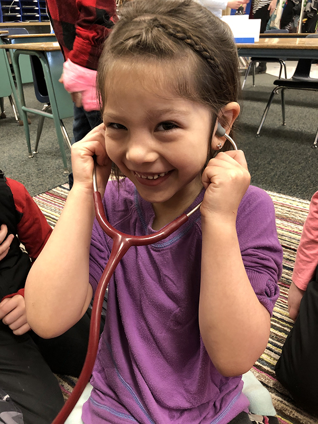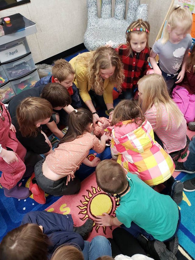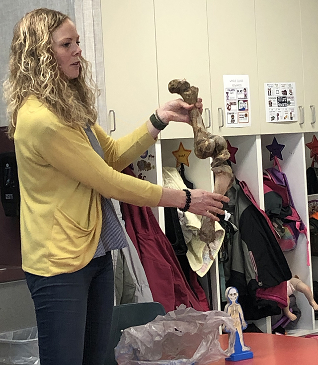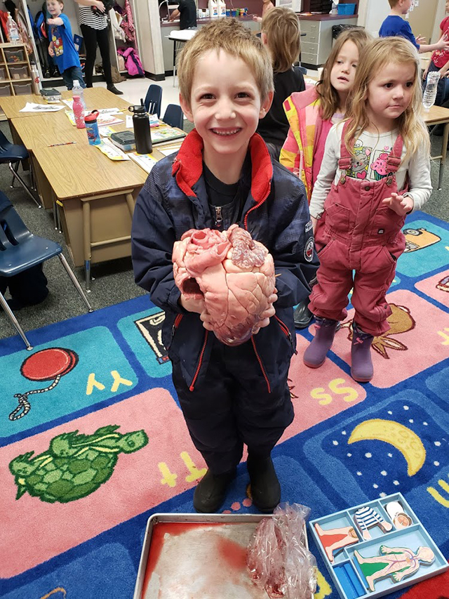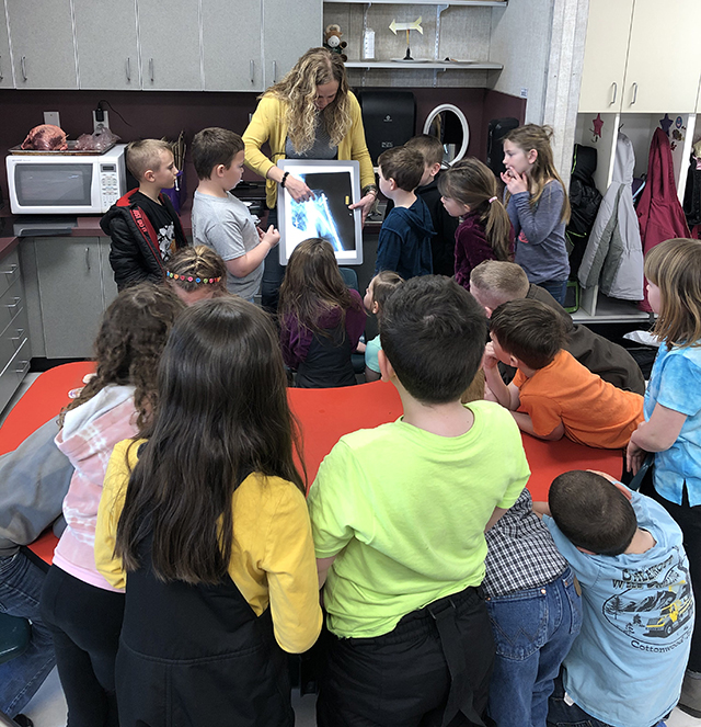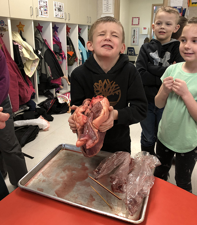 | Holman connects with students Physician Assistant Kari Holman shared her passion for healthcare and the human body with the prairie elementary kindergarten and first grade classes. It was a very fun and interactive lesson and included a puzzle to build the human body each organ system at a time, testing reflexes, listening to each others heart with the Stethoscope, looking at X-rays, and studying a cow heart. All photos below provided by Kari Holman. ![]() Kari Holman shows Prairie Elementary students a cow’s knee joint and different types of bone and cartilage. ![]() Holman and the kindergartners with a calf's heart. ![]() Holman shows an X-Ray to the first graders. ![]() David Quintal is not too sure about handling a calf's heart. ![]() Asher Graham-Allman was a little less squeamish handling a calf's heart. ![]() Ava Nuxoll tries out the stethoscope.