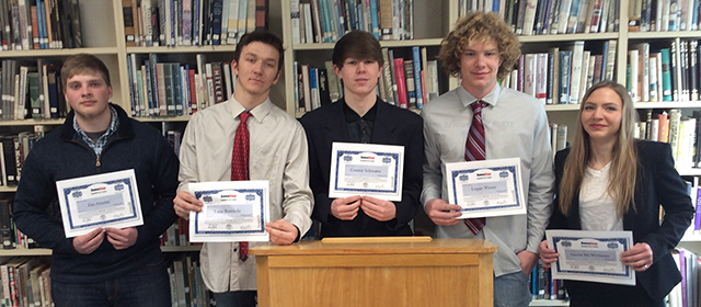 students. From left are Zac Arnzen, Lane Remacle, Connor Schwartz,