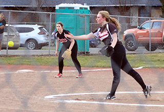 The Prairie Lady Pirates opened their softball season with a game at Lapwai that won’t be finished until April 15 at Cottonwood as it was stopped due to darkness after 6 innings with the score tied at 21-21. The game was played at Lapwai Thursday, March 18. ![]() Prairie led the game until a late Lapwai rally tied the score in the bottom of the 6th. Madison Shears led off the game with a single to right, stole second and went to third on a passed ball. Mackenzie Key walked and Prairie pulled off a delayed double steal. Key stole second and once the throw went to second, Shears took off from third and scored. Eve Uhlenkott walked. Both runners moved up on Josie Remacle’s groundout. Key scored on a passed ball and a couple pitches later, Uhlenkott also scored on a passed ball. With 2 outs, Riley Enneking drew a walk and stole second. Gracie Farr also walked and both runners moved up on a wild pitch. Laney Forsmann’s hard grounder to first got through for an error with both runners scoring for a 5-0 lead. Key pitched for the Pirates and got a quick out then gave up a single, 2 walks and another single but got out of the inning with just 1 run scoring. Ember Martin walked to lead off the second and stole second. With 1 out, Key singled home Martin. Uhlenkott beat out an infield single and both runners eventually scored on passed balls to make it 8-1. 2 errors, 2 walks and a 2 run single led to 4 runs for Lapwai in the second inning as they cut Prairie’s lead to 8-5. Prairie added 2 runs in the third as Martin and Shears each walked with 1 out. Both moved up on stolen bases to second and third. Martin scored on a sacrifice fly to center by Key and Shears scored on a single to right by Uhlenkott. In the bottom of the third, Key got the side out in order as Prairie maintained their 10-5 lead. The Pirates posted 7 runs in the fourth inning. Tara Schlader led off and was hit by a pitch. She stole second and then third and scored on a wild pitch. After an out, Farr walked, Forsmann and Martin were both hit by pitches to load the bases for Shears. Shears hit a gapper to the fence in right center and was able to circle the bases for an inside the park grand slam homer. Prairie wasn’t done scoring yet as Key and Uhlenkott each singled up the middle. Remacle was hit by a pitch to reload the bases. After a second out, Enneking walked to force in Key and Farr reached on catcher’s interference to force in Uhlenkott and make it 17-5. The rally was cut off when a baserunner was called out for leaving the base before the pitch left the pitcher’s hand. Lapwai cut the deficit to 17-9 with 4 runs in the bottom of the third. They had 5 hits, including a double, and might have tied it if not for a pair of defensive plays. Rightfielder Enneking threw out a baserunner at second trying to stretch a 3-run single into a double. After the next bitter doubled, she advanced to third on a passed ball. Catcher Remacle’s throw to third went over third baseman Farr’s head but shortstop Shears backed up the play, caught the ball in the air and tagged the runner off third for the third out. Prairie added 3 runs in the top of the fifth to take a 20-9 lead and give themselves a chance to end the game on the 10-run rule. Lapwai changed pitchers to start the inning and Martin drew a 1-out walk and stole second. Shears beat out an infield single. Key then singled up the middle to score Martin. Shears scored on a groundout by Uhlenkott and Key came home on a wild pitch. In the bottom of the fifth Prairie got off to a promising start when Lapwai sent the wrong hitter to the plate after the previous inning had ended on the basepaths. Unfortunately things quickly went downhill as 3 walks, 3 singles, 2 hit batters and an error led to 7 Lapwai runs that cut the lead to 20-16 before Prairie was able to get out of the inning. Prairie loaded the bases with nobody out in the top of the sixth but could only push across 1 run. Schlader walked to lead off and Enneking and Farr were both hit by pitches. Forsmann walked to force home Schlader. Then a strikeout and another baserunner leaving early scored 2 quick outs. Shears was hit by a pitch to reload the bases then a groundout to first ended the inning. With a 21-16 lead heading into the bottom of the sixth Prairie might still be able to hold on for the win. However Lapwai led off with a triple and that runner scored on an outfield error. Prairie got the next 2 batters outs then a walk and hit batter loaded the bases. Lapwai’s #8 hitter then crushed the ball to the fence in right center, clearing the bases and she then scored the tying run. Key got the next batter out to end the inning. There was discussion on whether to try and play another inning but it was then decided to suspend the game and finish it when Lapwai visits Prairie in April. Prairie had 9 hits led by Shears who had 2 singles, a homer and 4 RBI. Key had 3 singles and 3 RBI. Uhlenkott had 3 singles and 2 RBI. Farr and Forsmann each had an RBI. Key gave up 13 hits with 3 strikeouts, 8 walks and 3 hit batters. Prairie 5 3 2 7 3 1—21 9 4 Lapwai 1 4 0 4 7 5—21 13 1 ![]() Mackenzie Key connects on one of her 3 singles at Lapwai. ![]() Second baseman Ember Martin catches a short fly ball as shortstop Madison Shears watches. ![]() Eve Uhlenkott stirs up a cloud of dust as she scores a run. ![]() Mackenzie Key pitched for Prairie. Also shown is third baseman Gracie Farr. ![]() Eve Uhlenkott makes a catch in foul territory as Madison Shears watches. Shears plays in State All-Star game ![]() ![]() ![]() Erin Shears shared some photos of Madison in the State All-Star game played at Post Falls this past Saturday. Madison was on the winning Region team which beat the Metro team. she scored 2 points. March