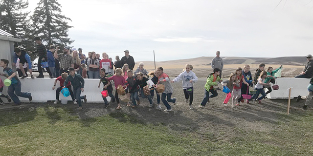 6-7 year olds at the start of the Easter Egg Hunt in Greencreek.