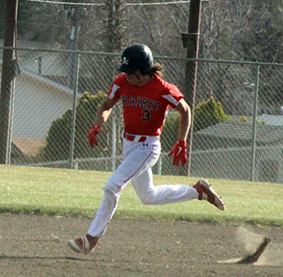 Genesee and by the time it did they had dug a 0-13 hole.3 walks and 2 doubles led to 3 runs in the first inning for Genesee against Schwartz who started on the mound for the Pirates. Schwartz allowed just 1 baserunner in a scoreless second. A leadoff home run plus 2 errors and 2 singles led to a pair of runs in the third. Meanwhile Prairie managed just 1 baserunner in the first 3 innings, a 1 out single by Ross in the first inning. In the fourth inning things fell apart for Schwartz as he gave up 8 runs thanks to a couple of errors plus 6 hits. Schwartz was pulled with 2 outs and 2 runners on with 6 runs already in. Alfrey came on and gave up a 2-run triple before getting out of the inning with a groundout to short. The Prairie offense finally came alive in the bottom of the fourth. Ross led off with a walk and Chase Kaschmitter followed with a double. Johnson singled to left to score Ross with Kaschmitter moving to third. Kaschmitter scored on a wild pitch. Johnson singled to left and Cody Kaschmitter went in as a pinch runner. Schwartz beat out an infield hit and McElroy singled to left to score Cody Kaschmitter. McElroy was forced at second with Schwartz moving to third. After a second out, Lane Remacle doubled to the fence in right center to score Schwartz and make it 4-13. Alfrey gave up a leadoff single in the fifth then got 3 straight outs. In the bottom of the fifth the Pirates’ rally continued with 4 more runs. Ross again led off the inning with a walk then Genesee changed pitchers. Chase Kaschmitter singled and Johnson hit a 2-run double to deep centerfield. After an out McElroy walked and after a second out Hasselstrom singled to left to score both Johnson and McElroy and cut the deficit to 8-13. Alfrey then ran into trouble in the sixth as 2 errors, 3 hit batters and 4 singles led to 7 runs. The ninth batter of the inning became the first out as Alfrey struck him out. After the fourth single, the Pirates got out of the inning on a double play as second baseman McElroy fielded a grounder, tagged the runner coming from first and threw to Johnson as first to end the inning. Prairie needed 3 runs in the bottom of the sixth to keep the game going. Alex McElroy pinch hit to lead off the inning and worked a walk. After an out, Chase Kaschmitter tripled to straightaway center to score McElroy. Kaschmitter scored on a groundout to second by Johnson. Schwartz worked a walk but Genesee then got the third out to end the game on the 10-run mercy rule. Prairie had 10 hits in the game. Chase Kaschmitter had a triple, double and single and an RBI. Johnson had a double and a single and 4 RBI. Remacle had a double and an RBI. Hasselstrom had a single and 2 RBI. Colton McElroy had a single and an RBI. Ross and Schwartz each had a single. Schwartz gave up 13 runs on 11 hits with 3 strikeouts, 5 walks and 1 hit batsman in 3 2/3 innings. Alfrey gave up 7 runs on 6 hits with 2 strikeouts, no walks and 3 hit batsmen in 2 1/3 innings. Prairie is now 4-2 on the season and 4-1 in league play. Genesee 3 0 2 8 0 7—20 16 0 Prairie 0 0 0 4 4 2—10 10 6 ![]() Chase Kaschmitter tossed a 2-hitter against Kamiah allowing just 1 unearned run. ![]() Dalton Ross races towards second with 1 of his 2 doubles against Kamiah. ![]() Cody Kaschmitter heads for home for the first run of the game against Kamiah after pinch-running for Dean Johnson. ![]() Connor Schwartz is about to score on a passed ball as the ball got away from the pitcher who was fielding the throw from the catcher. March