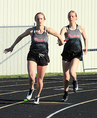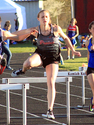 Prairie 2021 Track ScheduleMatt Coppernoll set a new personal best to win the discus while Kristin Wemhoff won the 100 meter dash and anchored the girls 4x200 relay team to a win at the Nez Perce Games at Kamiah Friday, April 16. Coppernoll tossed the discus 150’6” to beat his previous best mark by about 10 feet. He also took third in the shot put with a mark of 42’0”. ![]() Jesse Cronan was third in the discus with a personal best of 125’0”, fifth in the long jump at 16’11” and 11th in the 100 in 12.56. T.J. Hibbard was 4th in the 200 meter dash in 24.61. He was also 6th in the discus at 120’10” and 9th in the shot put at 37’0”. Zach Rambo was 8th in the 300 hurdles in 54.14 and 10th in the 100 in 12.47. Shane Hanson was 11th in the discus at 103’3”, 15th in the shot put at 32’2¾”, 20th in the 100 in 13.54 and 26th in the 200 in 28.10. Tyler Wemhoff was 11th in the 3200 in 12:27.08 and 12th in the 800 in 2:37.0. Sebastian Nuxoll was 11th in the 300 hurdles in 1:01.81, 27th in the 100 in 14.26 and 28th in the discus at 72’3”. Bennie Elven was 14th in the discus at 97’4” and 19th in the 400 meter dash in 1:01.92. Ambrose Nuxoll was 16th in the long jump at 13’5”, 23rd in the 200 in 1:07.09 and 39th in the 200 in 30.96. Lee Forsmann was 22nd in the 400 in 1:05.93, 22nd in the discus at 79’9” and 35th in the 200 in 29.44. Quirt Goeckner was 24th in the 400 in 1:08.97, 27th in the discus at 74’0”, 30th in the 100 in 14.40 and 37th in the 200 in 29.93. The 4x100 relay team of Cronan, Cole Martin, Rambo and Hibbard was third in 47.40. The 4x200 relay team of Elven, Forsmann, Ambrose Nuxoll and Sebastian Nuxoll was 6th in 1:53.92. As a team the boys placed 6th out of 11 teams with 51 points. For the girls, Wemhoff won the 100 in 13.34. She was also second in the 200 in 27.60 and third in the 400 in 1:02.43. The 4x200 relay team of Alli Geis, Ellea Uhlenkott, Julia Rehder and Wemhoff won with a time of 1:54.98. Uhlenkott placed 4th in the 100 hurdles in 17.44, 4th in the 300 hurdles in 50.29 and 5th in the long jump at 14’10”. Geis was 8th in the 300 hurdles in 1:00.15 and 19th in the 200 in 31.70. Rehder was 7th in the triple jump at 27’8½”, 12th in the long jump at 12’1½” and 18th in the 200 in 31.37. Sarah Lustig was 11th in the discus at 69’10” and 14th in the shot put at 20’4½”. Meghan Fowler was 15th in the shot at 19’6” and 20th in the discus at 42’1”. Olivia Klapprich was 22nd in the 200 in 33.46 and 24th in the 100 in 16.27. As a team the girls placed 5th out of 11 teams with 44 pts. ![]() ![]() Two of the 3 handoffs in the winning 4x200 relay. At left Alli Geis hands off to Ellea Uhlenkott. At right, Kristin Wemhoff has just taken the baton from Julia Rehder for the final leg. ![]() Cole Martin saw his first track action of the season anchoring the boys 4x100 relay. ![]() Jesse Cronan took third in the discus. ![]() ![]() The 4 runners in the boys 4x200 relay. At left Lee Forsmann takes the handoff from Bennie Elven. At right Ambrose Nuxoll hands off to older brother Sebastian Nuxoll. ![]() Meghan Fowler in the discus. ![]() Quirt Goeckner in the discus. Interesting note, Quirt marks 3 generations that Chronicle reporter Greg Wherry has covered in Prairie sports. He also covered his grandmother Della Uhlenkott Gehring and his mother Lynn Gehring Goeckner. ![]() Olivia Klapprich in a heat of the 200 meter dash. ![]() ![]() ![]() Ellea Uhlenkott in her 3 individual events. From left are the 100 hurdles, the 300 hurdles and the long jump. ![]() Jesse Cronan hands off to T. J. Hibbard in the 4x100 relay. ![]() Kristin Wemhoff in the 400 meter dash. ![]() Medalists at the Nez Perce Games. From left are Ellea Uhlenkott, Alli Geis, Kristin Wemhoff, Jesse Cronan and Matt Coppernoll. Not pictured is Julia Rehder.