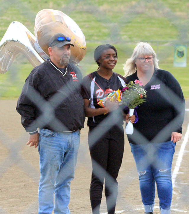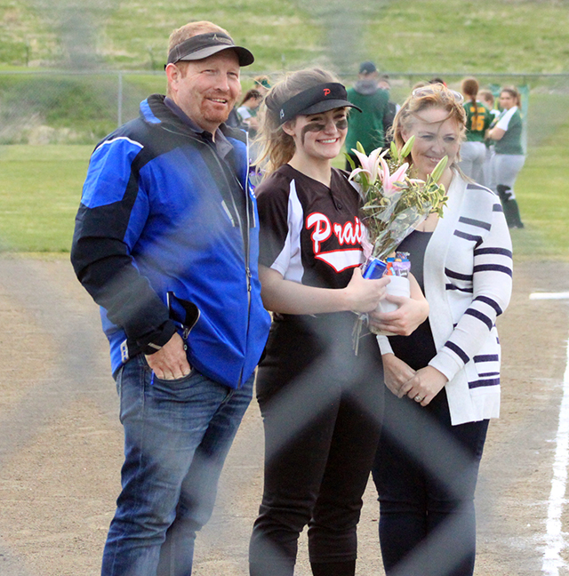 Night.![]() After the game was over, seniors Madison Shears and Eve Uhlenkott were honored along with their families. On Friday the game was picked up in the top of the second inning with the score tied at 1-1. Culdesac’s had a leadoff triple then scored on a passed ball. Eve Uhlenkott had reached on a 2-out single and then scored on a triple by Remacle. In the second inning Key gave up a 2-out walk then picked up her second strikeout to end the inning. Prairie then erupted for 8 runs in the bottom of the inning. Enneking walked and Farr reached on catcher’s interference. After an out, Ember Martin hit a grounder to third and the bases wound up loaded as Culdesac couldn’t make a play anywhere. Shears reached on an error with Enneking scoring the go-ahead run. After a second out, Eve Uhlenkott looped the ball behind second for a single that wound up clearing the bases with Uhlenkott going to second as the Wolves committed an error trying to get the ball back in. Remacle then hit her second triple to the wide open right field to score Uhlenkott. Enneking walked and stole second. Farr then singled home both runners to make it 9-1. Culdesac still had just 8 eligible players so the third inning started with an out. Culdesac then put together 3 straight hits to score 2 runs and cut the lead to 9-3. In the bottom of the third Martin reached on an error and wound up at second base. She went to third on a wild pitch and scored on Key’s 1-out single. That made it 10-3. In the fourth Key gave up a 2-out double to the 8th hitter in the order but then the inning ended on the automatic out for the 9th place hitter. In the bottom of the fourth, Prairie needed 3 runs for a 10-run lead to possibly invoke the 10-run rule or 8 runs to end the game on the 15-run mercy rule. Schlader led off with a single and stole second. Enneking walked and both runners moved up on a wild pitch. Farr was hit by a pitch to load the bases. Another wild pitch scored Schlader and moved up the other runners. After an out, Martin singled up the middle to score both Enneking and Farr. Martin then stole second. Shears beat out an infield hit with Martin going to third. Shears stole second then a wild pitch scored Martin and Shears went to third. Key was hit by a pitch. Eve Uhlenkott then hit a triple to right to score both runners. Remacle followed with a single to score Uhlenkott and get Prairie within 1 run of ending the game. Remacle stole second. Schlader followed with a rocket down the third base lane that the Culdesac third baseman was able to keep in the infield. Enneking then reached on an error to load the bases. Farr then was hit by a pitch to force home the game-ending run. Key gave up 3 runs on 5 hits with 3 strikeouts and 1 walk. Prairie pounded out 13 hits led by Remacle who had a single and 2 triples and 3 RBI. Eve Uhlenkott had 2 singles and a triple and 5 RBI. Schlader had 2 singles and triple and an RBI. Shears had 2 singles and an RBI. Farr had a single and 3 RBI. Martin had a single and 2 RBI. Prairie is now 10-1 on the season and 7-1 in league play. Culdesac 1 0 2 0— 3 5 5 Prairie 1 8 1 8—18 13 1 ![]() Mackenzie Key picked up two more wins this past week.