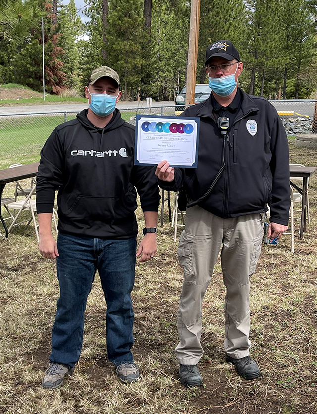 Josh Marks received a recognition award from SGT. Kristie Parker for