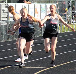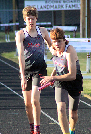 Coppernoll in the discus and the boys 4x100 relay team picked up wins at the Meet of Champions in Lewiston.Coppernoll tossed the discus 146’9” to win the event. He was also 5th in the shot put at 40’8.5”. The 4x100 team of Cronan, Cole Martin, Rambo and Hibbard won with a time of 46.68. Hibbard was 3rd in the 200 meter dash in 24.04, 5th in the discus at 135’3” and 11th in the shot at 36’10.5” Cronan was 8th in the discus at 123’1”, 15th in the 100 in 12.62 and 20th in the shot at 31’4”. Hanson was 9th in the discus at 121’11”. Elven was 14th in the discus at 100’8”. Wemhoff was 19th in the 1600 in 5:24.57. For the girls team Wemhoff was 3rd in the 200 in 28.18 and 5th in the 400 in 1:02.05. Uhlenkott was third in the 300 hurdles with a time of 48.17. She also placed fifth in the 100 hurdles in 17.36. Rehder was 6th in the triple jump at 32’3” and 10th in the long jump at 13’9”. The 4x200 relay team of Geis, Uhlenkott, Rehder and Wemhoff placed third in 1:52.41. The same 4 girls teamed up in the 4x100 relay and placed 4th in 53.45. ![]() Bennie Elven takes the baton from Jessie Cronan in the 4x200 relay at Kamiah that was won by Prairie. ![]() ![]() Two of the handoffs in the girls winning 4x200 realy. At left Julia Rehder hands off to Ellea Uhlenkott. At right, Alli Geis hands off to anchor runner Kristin Wemhoff. Also shown in the photo at left is coach Ryan Hasselstrom. . ![]() Ellea Uhlenkott in the 300 hurdles at Kamiah. ![]() Zach Rambo swoops in for a landing in the long jump at Kamiah. ![]() T.J. Hibbard easily won his heat of the 200 meter dash and his time was good enough for 2nd overall. ![]() ![]() Two of the 3 handoffs in the boys medley relay. At left Shane Hanson hands off to Bennie Elven. At right, Elven hands off to Ambrose Nuxoll who ran the final leg as Prairie finished 2nd. ![]() Julia Rehder in the triple jump where she seems to set a new PR every meet. ![]() Kristin Wemhoff in the 100 at Kamiah. She won the 100, 200 and 400 at the meet and anchored the 4x200 to a win. ![]() ![]() Two of the girls 4x100 handoffs. At left Olivia Klapprich takes the handoff from Sarah Lustig. At right, Klapprich hands off to Meghan Fowler. ![]() Tyler Wemhoff in the 1600 at Kamiah. ![]() Sebastian Nuxoll in the 300 hurdles. March 23-Kamiah Meet-rescheduled from March 25