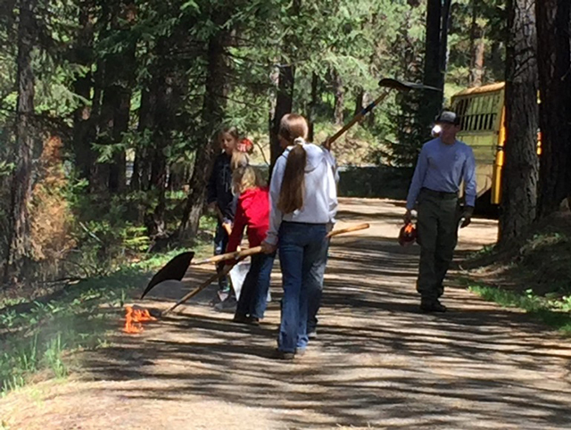 | Area 6th graders attend Conservation Field Day Teaching outdoors is natural for the Lewis Soil Conservation District (LSCD). Getting students outdoors and teaching them about conservation and natural resources is something they have been doing for 48 years. The LSCD served the community by organizing and hosting the Annual Sixth Grade Field Day at Winchester Lake State Park. This year, the event was enjoyed by 6th Graders from Prairie, Kamiah, and Highland school districts. The students rotated through eight educational stations every 20 minutes. Eileen Rowan, of the Idaho Soil Conservation Commission, instructed “Soils and Geology”. Robert Johnson, from the Idaho Department of Fish and Game, brought out a trailer loaded with poles and tackle and instructed a “Take me Fishing” station. “Fire Control” was instructed by Jed Pentzer from the Idaho Department of Lands. Chris Gerhart, Dave Luther, and Jeremy Isbelle, Idaho Department of Lands, presented a “Forestry” station. Johna Boulafentis from the Nez Perce Tribe Air Quality Program instructed an “Air Quality” station. Tyler Nelson, IDL & LSCD, took the students for a hike on a “Nature Trail”. Ken Hart of the University of Idaho Extension Office, and Eric Hasselstrom, LSCD, provided canoe use and safety instruction and assisted with lifejackets. Thanks to all instructors and volunteers for their time and knowledge. The LSCD appreciates the support from Winchester Lake State Park. Also much appreciated were Leanne Trautman and Jeremy Heft from the Winchester Quick Response Unit. Special thanks to Karol Holthaus for taking time out of her busy retirement to prepare lunches for the instructors, to be the timekeeper, and to lend a hand wherever she saw a need. It was a beautiful, sunny, fun-filled, day of learning. Everyone had a great time! ![]() ![]() ![]() ![]() ![]() ![]() Photos from the Conservation Field Day for area 6th graders. Photos by Lewis Soil Conservation District.