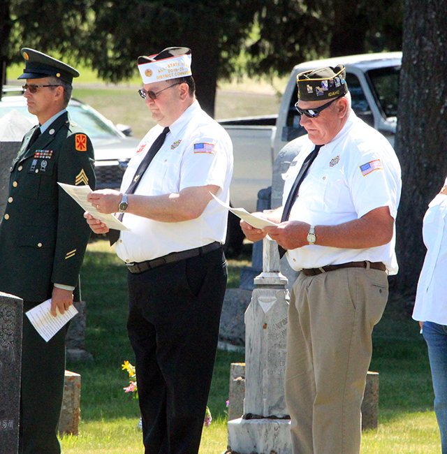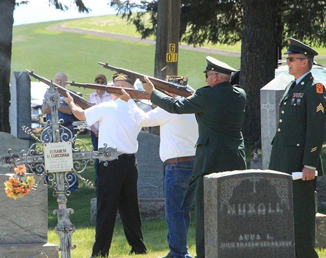Memorial Day photos![]() Members of VFW Post 4902 started their Memorial Day services at the Greencreek Cemetery. ![]() Sabrina Johnson lays the wreath at the Greencreek Cemetery. ![]() Joe Riener and Jim Schumacher read the names of those veterans buried in the Greencreek Cemetery. ![]() The rifle salute at Greencreek. Riflemen are Dale McElroy, Tom Nuttman and Pat Uhlenkott. Post Commander David Frei gives the orders to aim and fire. ![]() Second stop for the VFW was the Cottonwood Catholic Cemetery. Here they stand at attention as Rick Johnson, not shown, plays "Taps." ![]() Sabrina Johnson lays the wreath at the Catholic Cemetery. ![]() Riener and Schumacher reading the names of the over 100 local veterans buried in the the Cottonwood Catholic Cemetery. ![]() The Rifle Salute at Cottonwood Catholic Cemetery. ![]() The final stop this year was the Cottonwood Community Cemetery where Sabrina Johnson lays the wreath. ![]() riener and Schumacher read the names of those veterans buried in the Cottonwood Community Cemetery. ![]() The Rifle Salute at Cottonwood Community Cemetery.