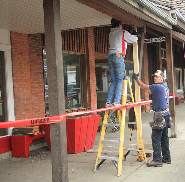 Bargains (the old Hoene Hardware building) breaking part of the front