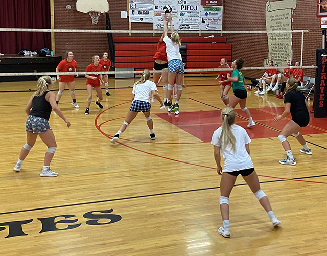One of the teams brought along their pajama shorts for one of the early morning matches at the Dusk to Dawn volleyball tournament June 25-26. Photo by Julie Schumacher. Click on the photo for a larger view.