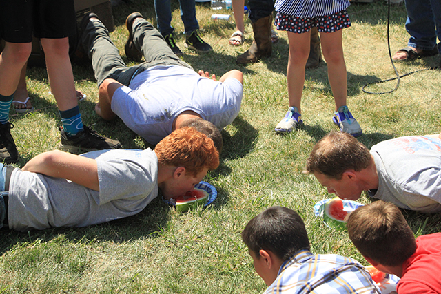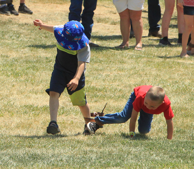 Photos from the Greencreek 4th of July Celebration![]() The classic Kiddie-Car Merry-Go-Round was still being enjoyed by youngsters whose parents rode it when they were younger. ![]() A couple of Andy and Molly Terhaar's girls ride the small merry-go-round. ![]() The first run of the barrel train featured a bunch of high school age riders. ![]() The more traditional younger group of riders enjoying a train ride. ![]() The bouncy house managed to stay upright even with the youngsters leaning against the edges. ![]() A group of youngster had a dunk tank. ![]() The street sports started with this young group of sprinters. ![]() A slightly older group races to the finish line. ![]() An early crash in the 3-legged race. The youngster in the blue hat was trying to get to the finish and wouldn't let his partner regain his footing. ![]() There were quite a few competitors in this age group of the 3-legged race. ![]() One of the younger groups of wheelbarrow racers. ![]() Easton Brugeman was able to safely catch the egg this time. ![]() This young man wasn't quite as lucky with his egg. ![]() Laney Forsmann got egg yolk on her blouse as her egg broke. ![]() Madison Shears safely catches her egg which was tossed by her grandpa Joe Kuther. ![]() The winning catch for longest toss was made by this young man well out into the field beyond the fence. His partner below wasn't quite as fortunate on the return throw. ![]() ![]() The younger competitors in the watermelon eating contest. The young man in the red shirt at the top wound up winning this round. ![]() Eric Nuxoll, at right in grey shirt, reclaimed his title of watermelon eating champion dethroning his son Sebastian, with the red hair, and Austin Sonnen, behind Sebastian, who were the last two winners. |