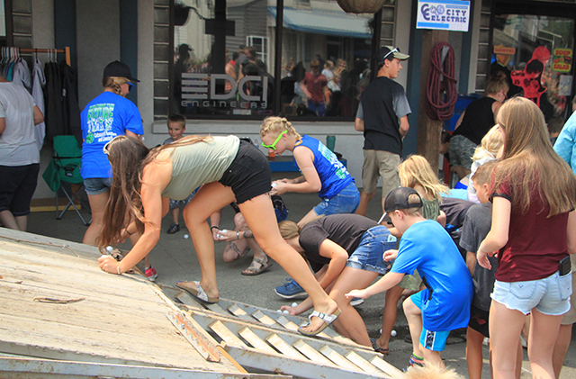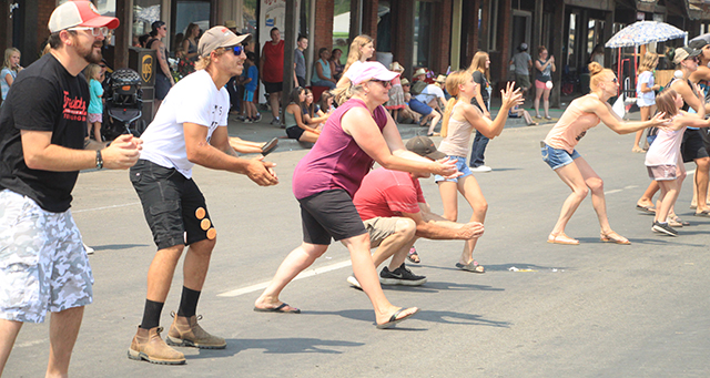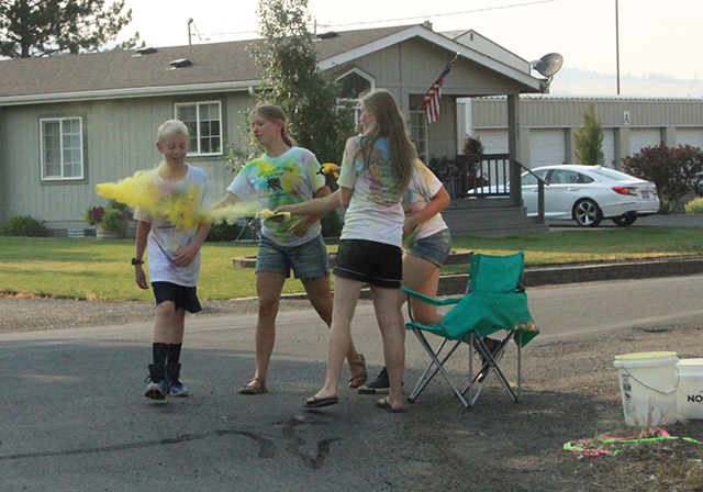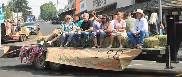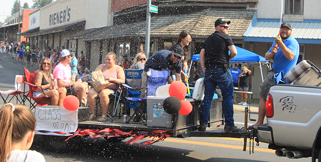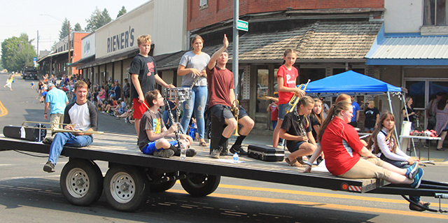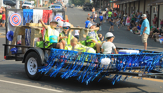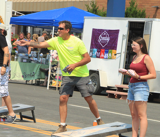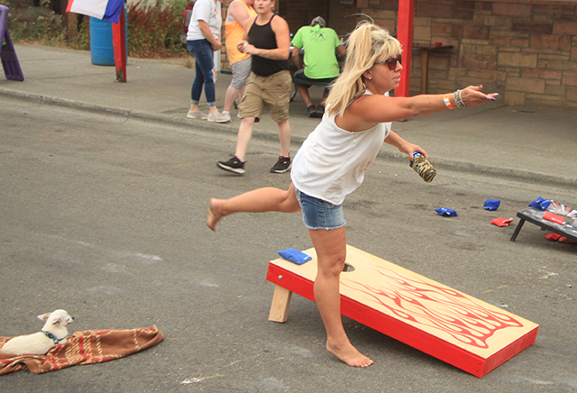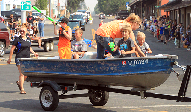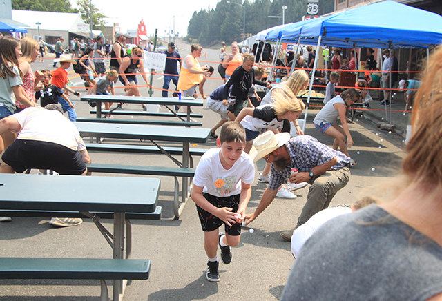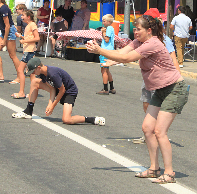 Spangled Banner to officially open the Summerfest Parade. ![]() ![]() ![]() ![]() Several Prairie High School class reunions took part in the Summerfest Parade. From top down are the classes of 1980, 1981, 2010 and 2011. ![]() The Cottonwood Credit Union's parade entry. ![]() There was a lot of candy to be had by the youngsters during the parade. ![]() Pacific Cabinets, Inc. had a parade entry. ![]() The Idaho County Fair Royalty were in the parade. ![]() The Prairie Band plays the school fight song. ![]() The band had just finished playing when this photo was taken as Alex McElroy practices his parade wave. ![]() Chase and Charlene Nuxoll of Hometown Auto and AG had this beautiful 1956 Chevy Pickup in the parade. They also displayed it at the Car Show next to Fred's Body Shop afteward. ![]() Several young ladies make up the Summerfest Royalty and were in the parade. ![]() Tom and Shirley Bower of TS Teknadyne had a parade entry. ![]() Several egg toss contestants prepare to catch eggs tossed by their partners. ![]() Tara Ross looks apprehensive but managed to safely catch the egg tossed by her husband Scott this time. ![]() Branden Waller makes a juggling catch of his egg. ![]() Clay Weckman had his egg break but as one of the final two pairs of contestants, so did their opponents. He and James Waters went on to win. ![]() Craig Hood and Isabella Walsh in the Cornhole Tournament put on by Chase Kaschmitter as his Senior project. Isabella's brother Levi and their uncle Carman Duuck were the winning team. ![]() Ellea Uhlenkott tosses the beanbag in the Cornhole Tournament. ![]() The Cornhole boards weren't done when the tournament was as several people continued to play throughout the day. Here Marina Geis makes a toss as he dog Ollie watches. ![]() Eli Rad was the only lawnmower race competitor this year although he had made sure nobody would beat him this time by grabbing a push mower as he had souped up the engine in his mower. ![]() Several of the Dog Show entrants. Lily Lockett, with the curly hair, and her Labradoodle wound up as dog and owner lookalike winners. ![]() This young puppy wound up as the obediance winner as his owner was able to have him do several tricks including rolling over. ![]() A couple more dog show entrants taking advantage of the shade. The little black puppy won as smallest dog entered. ![]() ![]() People scamble to pick up ping pong balls after they were dropped. A gust of wind just as they were dropped blew them all toward the south side of the street and many bounced off the awnings. ![]() Nick Uhlenkott was the early leader in the hay bale toss. ![]() Jarod Cash wound up winning the event. ![]() A couple of women also competed in the hay bale toss. ![]() Ryan Wemhoff gave the hay bale toss a try and was the only competitor to wear work gloves. ![]() A couple of young ladies try to steer their goldfish to the finish by blowing through a straw. ![]() A couple of identical, although differently colored bouncy castles were enjoyed all day by youngsters. |