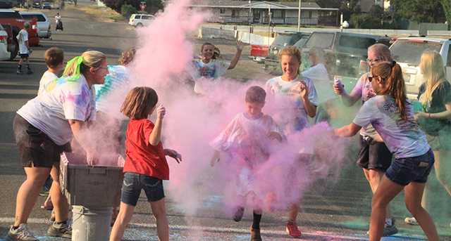 ![]() Runners get hit with pink dust at the finish line of the Color Run. ![]() Will Sonnen gets hit with yellow dust at the final color station before the finish line. ![]() The