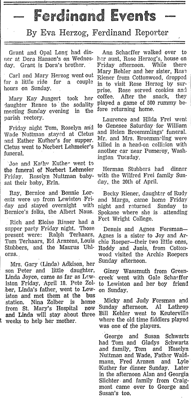 more of Eva Herzog's Ferdinand Area News columns from 1975. The above
