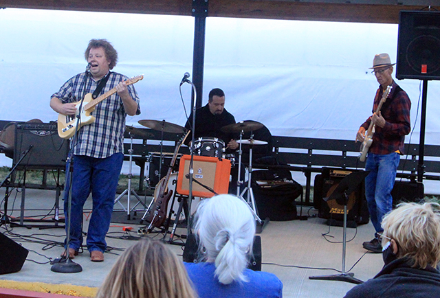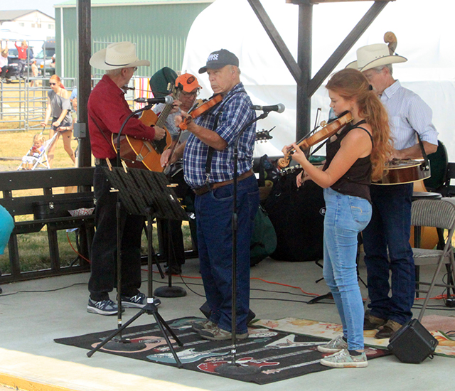 Providing musical entertainment at the Fair were the Old-Time Fiddlers, top photo, on Thursday at noon, and B-Sides, lower photos, on Friday evening. Click on each photo for a larger view.