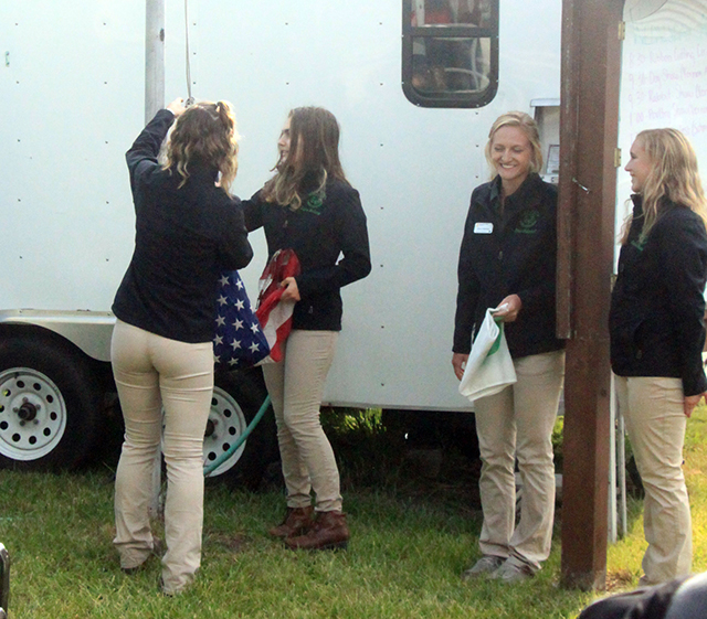 The 4-H Ambassadors raised the flag prior to the ribbon cutting on Wednesday morning. Click on the photo for a larger view.