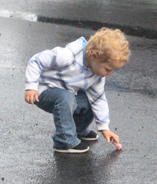 A youngster reaches for a piece of candy thrown by one of the Idaho County Fair Parade entrants. Click on each photo for a larger view.