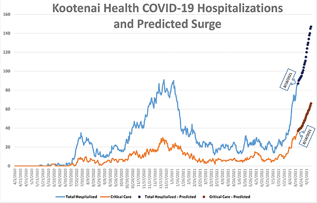 It is not our intent to frighten, but rather to inform our community of what lies ahead if the current trajectory continues. This past winter, it took a total of 58 days for the surge to climb from 28 patients to 87. This time it has taken less than half as long – only 21 days – and the numbers continue to escalate. Data from our own community supports the fact that the COVID-19 delta variant is replicating and spreading much faster than the original COVID-19 alpha variant. At the hospital, we are seeing that the delta variant is also leading to more severe illness in a younger population, many of which have few if any risk factors for hospitalization. Patients age 18-60 now represent approximately 50% of those hospitalized for COVID, compared to 20% during the winter surge. At this time, Kootenai Health has canceled elective surgeries and no longer has the capacity to receive patient transfers from other regional hospitals. Hospital leaders and physicians are critically concerned they will not have the space, equipment and staffing to provide care for everyone in our community who needs hospital care. This includes COVID-19 patients and patients who require care for other concerns such as heart attacks and injuries from car accidents. Kootenai Health and its medical staff have explored every possible option to ensure care is available for everyone who needs it. We are now imploring our community to add their efforts to ours. We are asking every individual and family to do their part to prevent and slow the spread of COVID-19. Please get vaccinated for COVID-19, wear a mask when out in public, avoid optional large gatherings, practice social distancing and wash or sanitize your hands frequently. Idahoans have always valued freedom and independence. We also recognize the value of working together as a community to take care of our own. Never were those qualities needed more than now. If we want continued access to health care and businesses, and for schools to remain open, every one of us must individually do our part to collectively defeat COVID-19. From your care providers at St. Mary’s Health “While this information above reflects the recent Kootenai Health COVID impact numbers, we are seeing the same trends right now in all of our local communities. Additionally, unlike the initial virus, the delta variant is having a greatly increased impact on children. In the last couple of weeks, the American Academy of Pediatrics has reported a significant increase in COVID-19 cases among people under 18 years of age, and that extends to younger children as much as to older teenagers. We know that the delta variant is much more contagious and is spreading rapidly. We also know that the majority of people impacted are unvaccinated, which isn't to say that fully vaccinated people are not contracting the virus. They are, but they are not getting as sick, nor requiring hospitalization or intensive care. Vaccination is the best protection against COVID. For you, for your children, and for your neighbors. As your healthcare partner, we care about all of our patients and our staff, and we strongly urge you to consider becoming fully vaccinated - not because we have some hidden agenda, and not because we are trying to "force" you to do anything, but because we don't want to continue to watch those we care for, and about, continue to become incredibly ill, or even die. We've already seen too much of it in the past year and a half. We have the tools to put an end to this, as vaccinations have done throughout history. If you haven't already, please consider speaking to your doctor about any questions or concerns you may have. We stand ready to care for, and protect, each of you. ![]() |