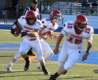 ball with Levi Walsh, 15, as lead blocker. Behind Hibbard is
