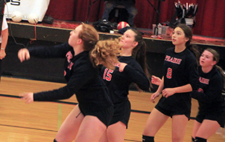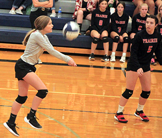 kills.Prairie pused the lead to 7-1 as Tara Schlader, Laney Forsmann and Trinity Martinez each scored a kill. They made it 11-2 on a kill by Martinez and 2 aces by Forsmann. ![]() Grangeville then rallied back within 4 points before a kill by Schlader and 2 kills by Martinez made it 14-7. Grangeville cut the lead to 18-16 before 2 kills by Schlader bracketing an ace by Lockett made it 21-16. Prairie got to game point at 24-20 on a kill by Martinez but missed a served and Grangeville added a kill to make it 24-22. Lockett then ended it by going cross court for a kill. In the second game it was 2-2 when Forsmann scored a kill and then went to the service line. 9 serves later Prairie had a 12-2 lead. Forsmann had 5 aces while Schlader and Martinez scored 2 kills each. After a pair of sideouts, Schlader had her own service run with 3 aces plus 3 kills by Martinez for an 18-3 lead. Grangeville managed to get the lead down to 21-11 before they missed a serve and that was it for the Bulldogs. Lockett hit the ball into a block but Forsmann dug it off the block and Lockett scored a kill. Forsmann then stuffed a Grangeville spike and finished off the game with another kill. In the third game Grangeville took the early lead at 3-6 and held the lead for the most part until Alli Geis made a save on a ball that appeared headed into the stands. Her ensuing kill made it 13-12 and a long discussion by Grangeville about whether Geis’ ball passed inside or outside the antenna led to a penalty point against Grangeville that made it 14-12. A kill by Lockett made it 15-12. The two sides scored several sideouts until a kill by Wemhoff sent Geis to the service line. She had 2 aces and Josie Remacle and Martinez each added a kill for a 22-14 lead. After trading sideouts, Schlader served an ace to get to match point at 24-15. Grangeville fought off match point 3 times before Martinez was able to score the match-ending kill. Martinez had 16 kills and 1 ace in the match. Schlader had 9 kills, 13 assists and 5 aces. Lockett had 7 kills, 3 assists and 3 aces. Forsmann had 4 kills, including a block plus 1 assists and 7 aces. Wemhoff had 3 kills and 22 assists. Geis had 3 kills and 4 assists. Remacle had 2 assists. Olivia Klapprich had 1 ace and Mckenzie Key had 1 assist. The JV team also swept the Bulldogs 25-18, 25-17, 15-9. Isabella Walsh opened the first game with 2 aces. Then after Grangeville tied it at 3-3, Julia Rehder scored a kill and Taylor Riener followed with a 4-point run to make it 8-3. She had 2 aces while Rehder and Ember Martin each added a kill. Grangeville rallied back within 1 at 8-7 before a kill and then an ace by Tamden Pecarovich made it 10-7. After a kill by Rehder, Grangeville again rallied within 1 point at 11-10. An ace by Martin then after sideouts a kill by Riley Enneking and 2 aces by Lexi Schumacher made it 17-11. Grangeville never got closer than 4 the rest of the way. The last time Grangeville got within 4 was at 22-18 but they then missed a serve and Riener then served up 2 aces to end the game. Grangeville jumped out to a 2-8 lead in the second game and it took awhile for Prairie to rally back. They finally tied it at 17 on a kill by Riener. Kaylie Lockett then served out the rest of the game. She had 5 aces while Pecarovich and Schumacher each added a kill and Lockett finished off the game when her dig of a Grangeville spike found the floor on the Grangeville side. In the third game Grangeville again took the early lead at 3-6 but 3 straight aces by Riener gave Prairie an 8-7 lead. Grangeville then tied it and took the lead back before missing a serve. Chloe Rowland then served out the match for Prairie. She had 2 aces while Lockett had 4 kills. One of Rowland’s aces finished off the match. The C team made it a perfect 9-0 day against Grangeville 25-20, 25-19, 15-7. Vs. Genesee