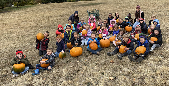 Kindergartners and first graders visited a local pumpkin patch on Oct.