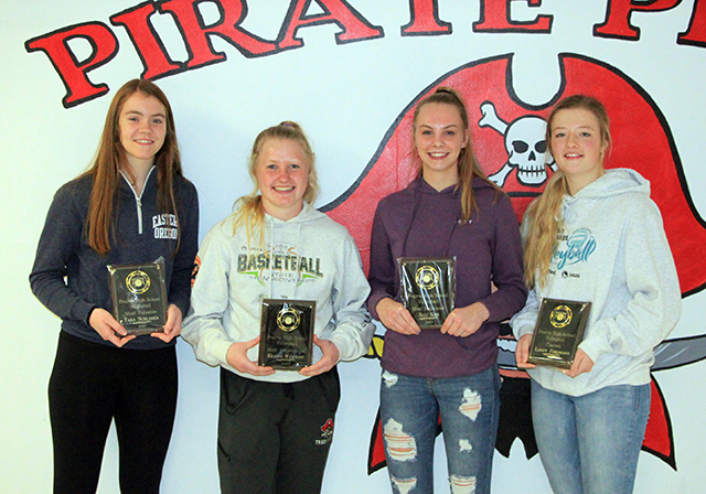 ![]() Prairie Volleyball awards were given out Tuesday, Nov. 2. From left are Tara Schlader, Most Valuable; Kristin Wemhoff, most inspirational; Alli Geis, most improved and Laney Forsmann, Captain. PIRATES GIRLS BASKETBALL SCHEDULE FOR
