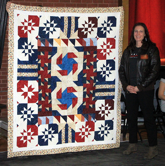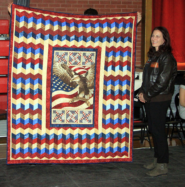 Casey Walker accepts a Quilt of Valor for Samuel Metz, who was unable to attended the ceremony. Click on the photo for a larger view.