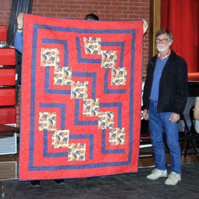 Ron Uhlenkott also received a Quilt of Valor at the Prairie Veterans Day assembly. Click on the photo