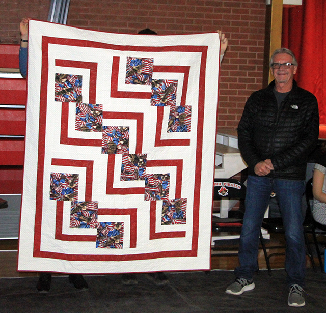 Miles Berg received one of 4 Quilts of Valor awarded at the Prairie Veterans Day assembly. Click on the photo for a larger view.