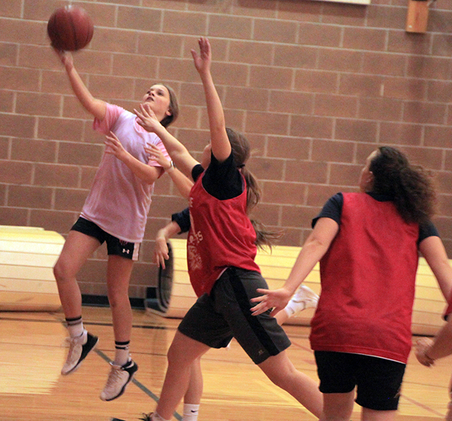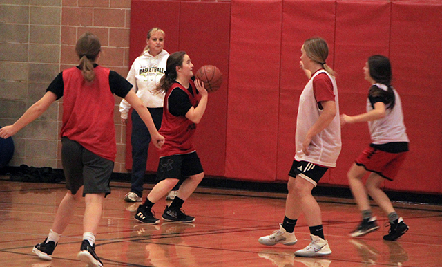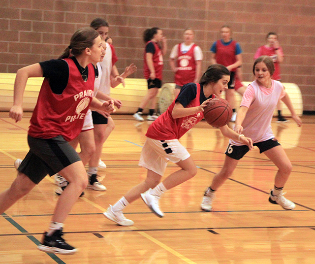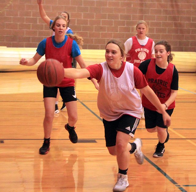 There are 20 girls turned out for the Prairie Girls Basketball team this year. There are 3 returning starters off of last year’s state runner-up team. They are senior Delanie Lockett and juniors Kristin Wemhoff and Tara Schlader. Other seniors on the team this year are Olivia Klapprich, Ali Rehder, Josie Remacle, Molly Johnson, Laney Forsmann and Gracie Farr. There are also 3 swing players who will play both JV and varsity. They are junior Riley Enneking, sophomore Isabella Walsh and freshman Lexi Schumacher. After resigning at the end of last year’s season, Lori Mader had a change of heart and is back for her twelfth season as head coach of the Lady Pirates. A new addition is her assistant coach, Ang Wemhoff, who played for Mader several years ago. In addition to the swing players the JV team has sophomores Taylor Riener, Alli Geis and Sarah Lustig and freshmen Aubree Rehder, Kadence Kalmbach, Kaylie Lockett, Ellie Nuxoll and Natalie Goeckner. As usual the teams to beat in the league will be Lapwai and Genesee. Prairie should battle those two for the top spots in the league and at District. This year the district will have 2.5 teams qualifying for State. The third place team at District will play the District 1 champion in a play-in game. ![]() Ali Rehder handles the ball during a scrimmage Monday as Lexi Schumacher defends, Also shown is Delanie Lockett. ![]() Laney Forsmann defends against Tara Schlader. ![]() Lexi Schumacher scores a lay-up as Delanie Lockett tries to get a hand in her face. Also shown is Kaylie Lockett. ![]() Molly Johnson runs down a loose ball. Also shown are Josie Remacle, Alli Geis, Kristin Wemhoff and Natalie Goeckner. ![]() Coach Lori Mader watches as Natalie Goeckner shoots. Also shown from left are Delanie Lockett, Molly Johnson and Aubree Rehder. ![]() Tara Schlader handles the ball and is guarded by Alli Geis, Kristin Wemhoff and Ellie Nuxoll. UPDATED PIRATES GIRLS BASKETBALL SCHEDULE FOR
