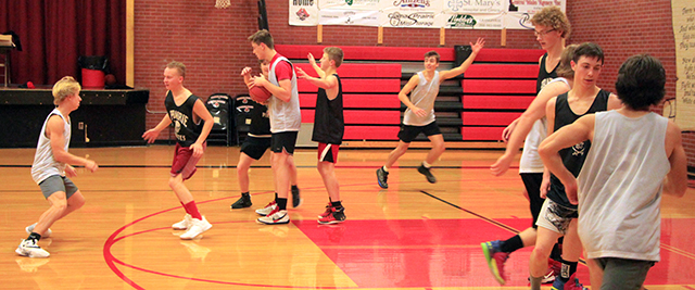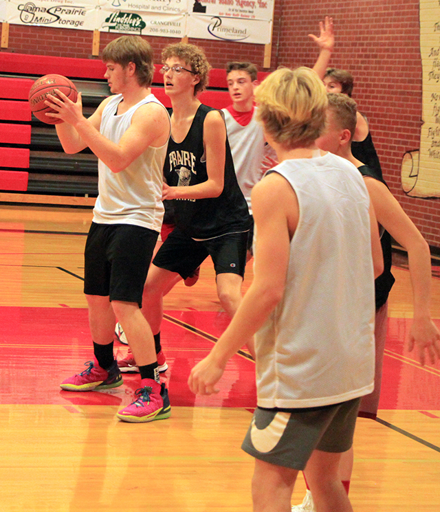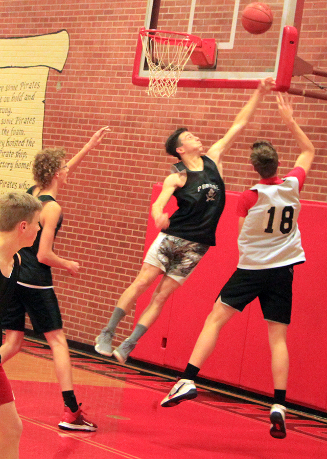 There are 25 players turned out for the Prairie boys basketball team as of Monday, Nov. 29. Returning players who started at least some of the games last year are seniors Kyle Schwartz, Wyatt Ross, Zach Rambo and Lane Schumacher. Another returning senior is Travis Alfrey. The Pirates will feature more height this year with juniors Morgan Poxleitner at 6’9”, sophomore Lee Forsmann at 6’6” and junior Shane Hanson at 6’5”. There will be 5 players who play both varsity and JV. They are juniors Colton McElroy and Wesley Riener, sophomores Noah Behler and Trenton Lorentz and freshman Matthew Wemhoff. JV/C players are juniors Connor Forsman and Ryan Wemhoff, sophomores Ben Elven and Dylan Forsmann and freshmen Briggs Rambo, Collin Ray, Logan Weber, Carter Shears, Dylan Uhlenkott, Kaden Duclos, Cole Duclos and Colt Kehler. With 4 starters back the Pirates should be in the mix for a state berth again this year. This year there will be 2½ teams qualifying from District 2 with the third place team at District traveling to Post Falls to play the District 1 champion for a state berth. Defending state champion Lapwai is expected to be the class of the White Pine League again as they return nearly their entire team. Genesee will also be a top contender. Prairie returns the entire coaching staff with Shawn Wolter as head coach and Justin Jones as JV coach with Glenn Poxleitner and Pat Holthaus helping out. The Pirates first varsity game will be at Grangeville this Friday, Dec. 3 as part of the Idaho County Shootout. The JV and C teams get into action Wednesday, Dec. 1 with home games against Grangeville. ![]() The Pirates run a play during practice Monday. Lee Forsmann has the bowl at the elbow. Also shown from left are Kyle Schwartz, Travis Alfrey, Lane Schumacher, Matt Wemhoff, Zach Rambo, Morgan Poxleitner, Shane Hanson, Colton McElroy and Wyatt Ross. ![]() Lee Forsmann gets a shut off over the block attempt of Colton McElroy. Also shown are Matthew Wemhoff and Morgan Poxleitner. ![]() Shane Hanson is guarded by Morgan Poxleitner. Also shown are Lee Forsmann, Kyle Schwartz, Travis Alfrey and Lane Schumacher. JV games start at 6 p.m., varsity to follow unless indicated