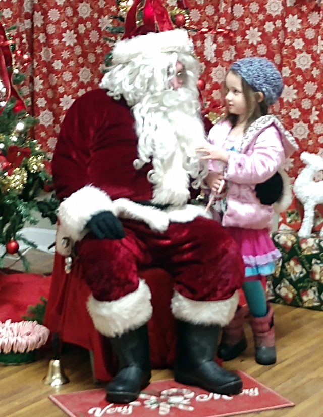 A young lady tells Santa what she would like for Christmas at Santa's Cabana in the Community Hall after the Christmas Parade. Click on the photo