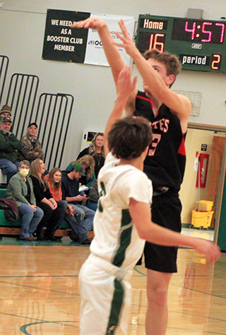 11 first quarter points on his way to 16 by halftime.Prairie never trailed in the contest as Forsmann opened the scoring with a putback of his own missed shot. After Potlatch tied it, Ross scored for a 4-2 lead. ![]() Potlatch tied it again at 4. Forsmann then scored inside to put Prairie into the lead for good. A minute later he added a 3-pointer to push the lead to 9-4. Potlatch made a pair of free throws but Forsmann answered with a pair of baskets to make it 13-6. Ross, Schwartz and Schumacher each added a basket as Prairie took a 19-10 lead at the end of the first quarter. Potlatch closed within 3 in the second quarter before Forsmann hit his second 3-pointer of the game to make it 22-16. Potlatch then closed within 2 at 22-20 before Rambo scored on a putback and Schumacher hit from 3-point range to quickly push the lead back to 7 at 27-20. Rambo and Forsmann each added a putback before halftime but Potlatch cut the lead to 6 with a basket and then a 3-pointer as it was 31-25 at halftime. In the third quarter Potlatch paid more attention to Forsmann defensively but that opened things up for Schumacher who scored 10 points in the quarter. Schumacher opened the second half scoring with a 3-pointer but Potlatch answered with 5 straight points. Schumacher scored on another 3 and then added 2 free throws. Rambo then scored a pair of baskets in an 11-0 Prairie scoring run that gave the Pirates a 45-30 lead. Potlatch closed the third quarter with 4 straight points and then scored the first 4 of the fourth to pull within 7 at 45-38. Ross scored on an inbounds feed from Schumacher then Potlatch scored 4 more points to get within 5 at 47-42 with 2:28 to play. Forsmann scored inside for his first points of the second half but Potlatch answered. Forsmann scored again, this time on a putback. Potlatch answered with a 3-point play to cut their deficit to 4 at 51-47 with 50 seconds left. Forsmann scored inside again to make it a 6-point game with 23 seconds left. Potlatch scored the game’s final points with just 2 seconds left to make the final margin 4 points. Forsmann wound up with 22 points to again lead the scoring. Schumacher added 15 with Rambo scoring 8, Ross 6 and Schwartz 2. Potlatch had a 21-26 edge on the boards. Forsmann led Prairie with 9 rebounds. Schumacher had 3 steals and 3 assists. Rambo had 5 assists and 2 steals. Schwartz had 4 assists. Prairie was 23 for 51 from the field, 45%, and 2 for 4 at the line. Potlatch was 19 for 38 from the field, 50%, and 9 for 9 at the line. Prairie committed 8 turnovers to 16 for the Loggers. Prairie ends 2021 with a record of 6-1 overall, 3-1 in league play. There was no JV game due to a lack of players available for Potlatch. Prairie 19 12 14 8 -53 Potlatch 10 15 9 15 -49 Prairie-Ross 3-10, 0-0, 6; Schwartz 1-3, 0-0, 2; Rambo 4-8, 0-0, 8; Schumacher 5-11, 2-2, 15; Forsmann 10-15, 0-2, 22; Alfrey 0-0, 0-0, 0; Hanson 0-3, 0-0, 0; Poxleitner 0-0, 0-0, 0. 3-pointers-Schumacher 3, Forsmann 2. Potlatch-Brown 3-6, 0-0, 7; Clark 5-8, 6-6, 16; Vowels 7-11, 0-0, 15; Howard 1-4, 0-0, 2; McManus 3-6, 3-3, 9; Barnes 0-2, 0-0, 0; Amos 0-1, 0-0, 0; Lusby 0-0, 0-0, 0. 3-pointers-Brown, Vowels. ![]() Lee Forsmann shoots for 3 at Potlatch. He scored a total of 45 points in the Pirates two wins last week. ![]() Morgan Poxleitner and Zach Rambo battle for rebounding position at Potlatch. ![]() Zach Rambo goes for a lay-up at Potlatch. JV games start at 6 p.m., varsity to follow unless indicated