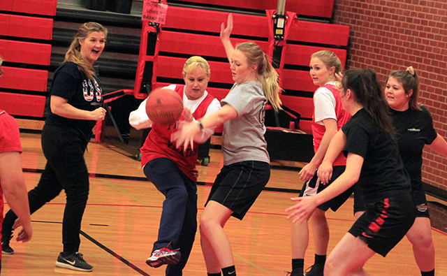 Mader has the ball in the women’s alumni game held Monday at the high