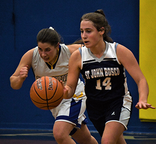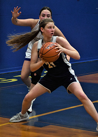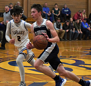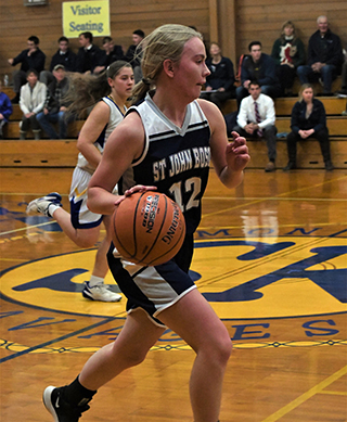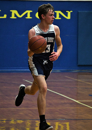 the game.They trailed 7-19 at the half but closed with 22-30 after 3 quarters. Jade Prigge led the scoring with 16 points. Sarah Waters scored 7, Dani Sonnen, Noelle Chmelik and Julia Wassmuth scored 2 each and Raylie Warren scored 1. Waters scored the Lady Patriots only 3-pointer. The Lady Patriots finish 2021 with a 0-5 record. The next action for the Patriots are home games against Clearwater Valley on Tuesday, Jan. 4. St. John Bosco 3 4 15 8 -30 Salmon River 11 8 11 9 -39 SJB-Prigge 7, 2-2, 16; D. Sonnen 0, 2-5, 2; Chmelik 1, 0-0, 2; Waters 3, 0-0, 7; Wassmuth 1, 0-0, 2; R. Sonnen 0, 0-0, 0; Warren 0, 1-2, 1. 3-pointers-Waters. SR-Pottenger 2, 0-0, 6; Holton 3, 2-2, 8; Calvin 4, 0-4, 8; Jones 2, 0-3, 4; Walters 5, 0-0, 13. 3-pointers-Walters 3, Pottenger 2. ![]() Cody Wassmuth guards the ball. Also shown are Clay Weckman and Tory Chmelik. ![]() Tory Chmelik handles the ball at Salmon River. ![]() Luke Stubbers with the ball at Salmon River. ![]() Tory Chmelik shoots for 2 of his 27 points at Salmon River. ![]() Dani Sonnen brings the ball upcourt at Salmon River. ![]() Julia Wassmuth with the ball at Salmon River. ![]() Sarah Waters handles the ball at Salmon River. ![]() Raylie Warren with the ball at Salmon River. All photos by David Rauzi. NOVEMBER