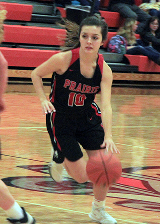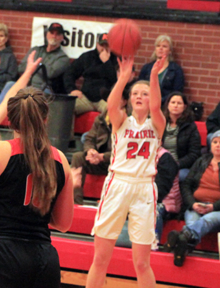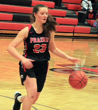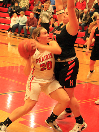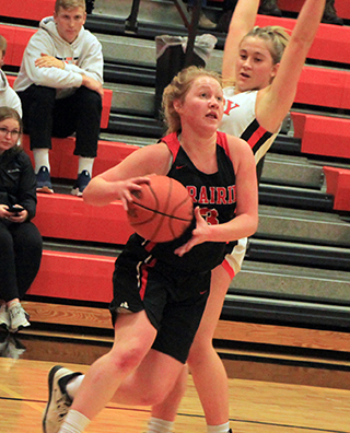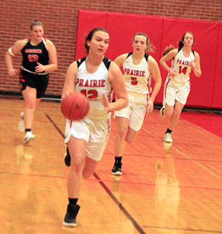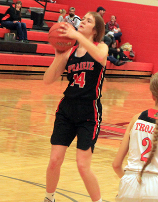 of the second half before pulling out the win.Kendrick jumped out to a 0-8 lead in the game as Prairie went scoreless until Tara Schlader scored a lay-up with 3:50 left in the first quarter. She wound up scoring Prairie’s first 5 points. ![]() Prairie trailed 9-15 after a 3-pointer by Kendrick put rallied within 1 by the end of the quarter. Delanie Lockett made a pair of free throws and Laney Forsmann closed out the scoring in the quarter with a 3-pointer that cut the deficit to 14-15. Kendrick opened the second quarter with a pair of baskets to take a 14-19 lead then prairie put together an 8-0 run that gave them their first lead of the game. Schlader scored a putback then Kristin Wemhoff scored the next 6 points. She made 2 free throws then drove to the hoop for the go-ahead lay-up with 4:56 left in the half. She scored on another drive to the hoop 20 seconds later for a 22-19 lead. Those two lay-ups were both set up by steals by Schlader. Kendrick took back the lead on a pair of baskets by 5’10” senior Erin Morgan. With 1:00 left Wemhoff stole the ball and drove for a basket and a 24-23 lead. Kendrick however closed out the half with a 3-pointer for a 24-26 lead at the break. Kendrick scored first to start the second half then an 11-2 run by the Pirates put them ahead for good. Lockett started the run with a putback. Schlader scored inside to tie it. Kendrick scored to retake the lead then Prairie scored 7 straight points. Lockett made a free throw then Forsmann stole the ball and Lockett scored to put Prairie on top 31-30 with 5:56 left in the third quarter. Josie Remacle scored a putback and Schlader added a basket for a 35-30 lead. Kendrick got back within 1 at 35-34 before Schlader scored on a feed from Molly Johnson and then Lockett made a 3 for a 40-34 lead. Kendrick’s Morgan scored to close out the quarter and make it 40-36. Kendrick scored to open the fourth quarter but Forsmann answered. Kendrick again got within 2 with a basket but Remacle scored 2 of 4 free throws and Schlader and Forsmann each added a basket to push the lead to 48-40 with 3:21 left to play. Kendrick score a pair of baskets to get back within 4 but Ali Rehder sank 2 free throws and Lockett added a free throw to push the lead back to 7 with 31 seconds left. Kendrick made 2 free throws but Rehder added another free throw to close out the scoring. On the downside, Johnson suffered an injury and may be out several games. Schlader wound up as Prairie’s leading scorer with 15 points with Lockett scoring 11, Forsmann 9, Wemhoff 8, Remacle 6 and Rehder 3. Kendrick, with their size advantage, had a 29-41 rebounding edge. Schlader and Remacle each had 7 rebounds to lead the Pirates. Wemhoff had 8 steals and 4 assists. Prairie was 19 for 53 from the field, 36%, and 12 for 23 at the line, 52%. Kendrick was 20 for 49 from the field, 41%, and 4 for 7 at the line, 57%. Kendrick’s Morgan led all scorers with 18 points as she was 9 for 10 from the field. In the JV game Prairie never lead until late in the third quarter but pulled out a 37-34 win. Kendrick jumped out to a 2-13 lead and led 4-15 at the end of the first quarter. Prairie was limited to just 6 shots attempts as they turned the ball over 9 times. Lexi Schumacher and Alli Geis each had a basket for Prairie. Prairie turned things around in the second quarter as they opened with a 7-0 run to get back into the game. Riley Enneking got things going with a steal and then Isabella Walsh scored Prairie’s next 5 points on a free throw and 2 baskets. Prairie outscored Kendrick 10-2 in the second quarter as they cut their deficit to just 3 by halftime, 14-17. They trailed 11-17 when Taylor Riener scored a basket and Enneking a free throw to close out the half. Kendrick scored first in the second half then Prairie scored 5 straight to tie the game for the first time since it was 2-2. Walsh scored a basket and a free throw and Schumacher then scored the tying basket. Kendrick answered with 4 straight but Schumacher answered back with 2 baskets to again tie it at 23-23. Another trade of baskets had the scored tied at 25-25 after Schumacher stole the ball and scored. Kendrick took the lead 1 more time with a free throw but Schumacher answered with a basket with 1:10 left in the quarter to give Prairie their first lead at 27-26. That’s how the quarter ended. Walsh scored from the elbow to open the fourth quarter but Kendrick answered. Walsh scored again to make it 31-28 but Kendrick scored a basket and a free throw to tie it at 31. With 4:10 left Ellie Nuxoll scored on a feed from Schumacher to give Prairie the lead for good. Walsh scored for make it a 4 point lead then Kendrick cut the lead to 1 with 1:54 left. Neither team scored until with 13 seconds left a Kendrick turnover led to 2 free throws by Walsh that made the final scored 37-34. Walsh led the scoring with 13 points with Schumacher adding 12. Enneking scored 6 with Geis, Riener and Nuxoll adding 2 points each. Prairie was outrebounded 31-38. Geis led the Pirates with 11 rebounds. Walsh had 7 steals while Schumacher had 6. Walsh led in assists with 4. The JB’s were 16 for 46 from the field, 35%, and 5 for 14 at the line, 36%. Kendrick was 15 for 45 from the field, 33%, and 4 for 12 at the line, 33%. Prairie 14 10 16 12 -52 Kendrick 15 11 10 10 -46 Prairie-Wemhoff 3-11, 2-4, 8; Lockett 3-12, 4-7, 11; Schlader 7-14, 1-2, 15; Johnson 0-4, 0-0, 0; Forsmann 4-8, 0-0, 9; Remacle 2-4, 2-6, 6; Rehder 0-0, 3-4, 3; Klapprich 0-0, 0-0, 0. 3-pointers-Lockett, Forsmann. Kendrick-Stewart 4-10, 4-4, 12; Stacy 0-3, 0-1, 0; Tweit 4-12, 0-0, 10; Morgan 9-10, 0-2, 18; Taylor 1-7, 0-0, 2; Silflow 1-2, 0-0, 2; Heimgartner 0-2, 0-0, 0. 3-pointers-Tweit 2. At Troy
