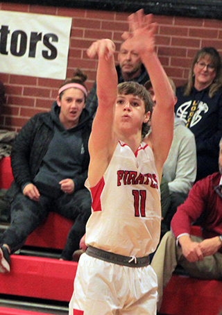 they coughed up that 12 point lead and had to win the game in overtime.Prairie scored the first points in the game on a bank shot by Rambo. Logos then scored 7 straight to take the lead. ![]() The Knights would hold the lead until well into the third quarter. Lee Forsmann broke the early scoring drought with a lay-up after he came off the bench. He didn’t start due to a collision with the wall during practice earlier in the week. He wound up scoring 5 of Prairie’s 7 first quarter points. A harbinger of things to come was that the Pirates were 1 for 5 at the line in the opening quarter. Logos built their lead up to 10 points at 11-21 with 5:05 left in the half thanks to six 3-point baskets. Rambo started a 7-0 Pirate run with a basket. A steal by Kyle Schwartz led to a lay-up by Schumacher and then Schumacher connected on a 3 pointer to get the Pirates within 3 at 18-21. A basket and their seventh 3 of the half put Logos back up by 8. In the final minute of the half Schwartz scored on a 1-hander in the lane and followed that up with a 3-pointer to make it 23-26 at the half and give Prairie some momentum. Rambo drove to the hoop for a lay-up to cut the deficit to 1 but Logos answered with a basket. A 3 by Schumacher tied it at 28, the first tie of the game since 0-0. Another 3 by Logos put the Knights back on top but Forsmann scored the next 4 points on a free throw, basket and free throw for a 32-31 lead. The lead changed again on 2 free throws by the Knights. A basket each by Rambo and Schumacher gave Prairie a 36-33 lead after 3 quarters. Another basket by Rambo made it a 5-point lead. After a 3 by Logos, Prairie scored 7 straight to take a 45-36 lead. Two baskets by Forsmann bracketed a 3 by Schumacher. A 3 by Logos cut the lead to 6 but Prairie then scored 6 straight points, all at the free throw line, over the next 3:20 of the game. They hit 6 of 9 free throws in that stretch to give them a 51-39 lead with 1:05 left to play. At that point it looked like the game was in hand. Make a few free throws and go home a winner, right? Logos hit a 3-pointer then fouled Ross. He missed 2 and Logos scored a free throw to get within 8 with 41 seconds left. Ross was fouled again and missed twice. Logos scored a 3 to pull within 5 with 26 seconds left. Schwartz, Rambo and Schumacher each missed a pair at the line and Logos scored 2 free throws to pull within 3 and then with 2 seconds left Will Casebolt put up a high arching shot from about 25 feet out that swished to tie the game at 51-51. Rambo’s 40 footer at the buzzer missed and the game went to overtime. Logos had wiped out a 12-point deficit in just 65 seconds. The break to start overtime gave Prairie a chance to reset and 43 seconds into the extra period, Ross scored on a drive to the hoop to put Prairie back into the lead. Rambo missed 2 more free throws and Logos was able to tie it again at 53 with 1:28 left. Forsmann was fouled with 1:05 left and missed the first shot to make it 13 straight missed free throws. He made the second to put Prairie back into the lead. Logos missed on their end and Rambo scored on a drive to the hoop for a 3 point lead with 38 seconds left. Forsmann again made the second of 2 free throws for a 4 point lead with 18 seconds left. Schumacher made 2 free throws with 10 seconds left for a 6 point lead. Logos was able to hit a final 3-pointer to cut the final margin to 3 points. Forsmann wound up as the Pirates’ leading scorer with 18 points. Schumacher was right behind with 17. Rambo scored 12, Schwartz 7, Ross 3 and Hanson 2. Casebolt for Logos topped all scorers with 23 points and had seven 3-pointers. 14 of the 18 baskets made by Logos were 3-pointers. Rebounding was even at 42 each. Forsmann led the Pirates with 13 rebounds while Schwartz had 8. Ross had 3 steals and Schumacher had 4 assists. Prairie was 21 for 51 from the field, 41%, and 13 for 38 at the line, 34%. Logos was 18 for 56 from the field, 32%, and 6 for 15 at the line, 40%. Prairie is now 5-2 in league play and 9-2 overall. Prairie also won the JV game by a score of 67-50. Prairie jumped out to an 8-0 lead and never trailed in the game. Bennie Elven, Trenton Lorentz, Noah Behler and Matthew Wemhoff each scored a basket in that opening run. Logos got back within 3 points at 13-10 after a pair of 3-pointers but Prairie responded with a basket each by Behler and Weston Riener. Behler added 4 more points in the quarter as Prairie led 21-15 at the end of the period. Wemhoff opened the second quarter scoring with a basket and Behler added 4 more points as Prairie took a 27-15 lead. Prairie’s biggest lead of the half came at 32-19 after a free throw by Dylan Forsmann. Logos outscored Prairie 1-7 the rest of the half to pull within 7 at the break, 33-26. Logos got the deficit down to 4 at one point in the third quarter at 38-34 but Prairie then scored 9 straight points to retake control. A basket by Elven, a 3 by Wemhoff and a basket each by Colton McElroy and Riener made it 47-34. Prairie led 51-38 after 3 quarters. Logos never got closer than 10 points in the fourth quarter. Behler led the JV’s in scoring with 15 points while Elven sand McElroy scored 11 each. Riener was also in double figures with 10. Wemhoff scored 9, Lorentz 8, Briggs Rambo 2 and Forsmann 1. Logos had a 37-47 edge on the boards. Lorentz had 11 to lead the Pirates with McElroy adding 8 rebounds. Behler had 6 steals while McElroy had 5. Wemhoff had 5 assists. Prairie was 27 for 60 from the field, 45%, and 10 for 23 at the line, 43%. Logos was 22 for 59 from the field, 37%, and 4 for 7 at the line, 57%. Logos won the C game, breaking open a close game in the fourth quarter to win 26-39. Prairie 7 16 13 15 8 -59 Logos 13 13 7 18 5 -56 Prairie-Ross 1-2, 1-6, 3; Schwartz 2-5, 2-4, 7; Rambo 6-11, 0-5, 12; Schumacher 5-13, 4-9, 17; Hanson 1-4, 0-0, 2; Forsmann 6-16, 6-13, 18; Alfrey 0, 0-0, 0; Poxleitner 0, 0-0, 0; McElroy 0, 0-1, 0. 3-pointers-Schumacher 2, Schwartz. Logos-Nuttbroc