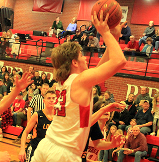 Kyle Schwartz puts up a 3-point shot against Logos.At Kamiah