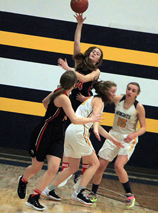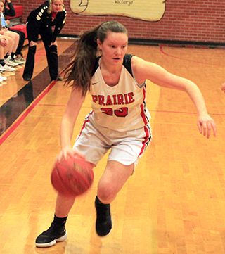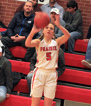 a 3-point shot.Schlader made 4 of 5 shots in the first quarter and had 9 points while Lockett scored 4 as Prairie led 20-12 at the end of the quarter. Olivia Klapprich scored a pair of baskets in the second quarter and Lockett. Schlader and Forsmann scored 2 each. In the third quarter Prairie scored the first 16 points to balloon their lead from 24 to 41 at 59-18. Forsmann scored 7 of the first 9 points with Schlader scoring on a putback. Schlader then scored the next 7. Logos finally broke the dry spell with a basket at the 4:54 mark. Lockett and Schlader each scored a basket then Logos scored a pair of free throws. Ali Rehder scored the final 9 points of the quarter, hitting 4 straight shots including a 3-pointer. With a 72-22 lead, the fourth quarter was played with a running clock. Forsmann scored another basket in the fourth quarter with Lexi Schumacher hitting a 3. Wemhoff and Schlader each scored a basket to put Prairie over 80 points. Schlader wound up with 24 and Wemhoff 20 to lead the scoring. Forsmann added 11 with Rehder scoring 9, Lockett 8, Klapprich 4 and Schumacher 3. Prairie had a 27-21 rebounding edge led by Schlader and Forsmann with 8 each. Schlader had 6 steals while Wemhoff had 5. Schlader and Wemhoff each had 6 assists. Prairie was 38 for 62 from the field, 61%, and 3 for 6 at the line, 50%. Logos was 11 for 35 from the field, 31%, and 8 for 10 at the line, 80%. Prairie is now 10-3 on the season and 9-1 in league play. Prairie dominated the 2-quarter JV game, winning 28-6. Prairie jumped out to a 9-0 lead with Taylor Riener scoring twice on inbounds plays and Geis on another inbounds play. Isabella Walsh scored a free throw and then a basket. After a Logos baskets, Geis converted a 3-point play to make it 12-2. Logos scored to make it 12-4 at the end of the quarter. The Knights opened the second quarter with a basket to pull within 6 but then went scoreless over the final 7:30 of the game. Prairie meanwhile closed out the game with a 16-0 run. Geis scored 10 of those points, 6 of them on inbounds plays. Walsh, Schumacher and Ellie Nuxoll each added a basket. Geis wound up with 15 points to lead the scoring. Walsh scored 5, Riener 4 and Schumacher and Nuxoll 2 each. Logos had a slight rebounding edge at 17-18. Nuxoll led Prairie with 4 rebounds. Enneking, Schumacher and Geis each had 4 steals while Walsh had 7 assists, mostly on inbounds passes. The JV’s were 12 for 29 from the field, 41%, and 2 for 4 at the line, 50%. Logos was 3 for 17 from the field, 18%, and 0 for 5 at the line. Prairie 20 23 29 9 -81 Logos 12 6 4 6 -22 Prairie-Wemhoff 10-12, 1-2, 22; Lockett 4-6, 0-1, 8; Remacle 0-3, 0-0, 0; Schlader 11-14, 2-3, 24; Forsmann 5-10, 0-0, 11; Rehder 4-8, 0-0, 9; Klapprich 2-4, 0-0, 4; Farr 0-0, 0-0, 0; Walsh 0-0, 0-0, 0; Schumacher 1-2, 0-0, 3; Enneking 0-0, 0-0, 0. 3-pointers-Wemhoff, Forsmann, Rehder, Schumacher. Logos-Rench 1-3, 2-2, 4; Casebolt 1-3, 0-0, 2; S. Miller 1-7, 0-0, 2; Wilson 2-6, 5-6, 9; VanderPloeg 5-11, 0-0, 10; Holloway 0-1, 0-0, 0; T. Miller 1-1, 1-2, 3; Johnson 0-3, 0-0, 0; Monjure 0-1, 0-0, 0. 3-pointers-none. ![]() ![]() Isabella Walsh handles the ball against Grangeville. ![]() Tara Schlader passes the ball to Delanie Lockett in the Logos game. ![]() Ali Rehder goes for a lay-up at Logos. ![]() Delanie Lockett handles the ball at Logos. Back to the camera is Tara Schlader. ![]() Olivia Klapprich shoots for 2 at Logos. ![]() Tara Schlader goes for a lay-up at Logos. PIRATES GIRLS BASKETBALL SCHEDULE FOR