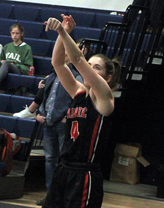 Delanie Lockett scores a 3-point shot at the end of the first half against Grangeville.On Tuesday, Jan. 11, they lost to Grangeville at Cottonwood 37-49. On Thursday, Jan. 13, they beat Kamiah 52-19, also at Cottonwood. Finally, on Saturday, Jan. 15, they traveled to Moscow and beat Logos 81-28. Vs. Grangeville