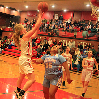 For the first time since Dec. 11, 2018 and after 11 straight losses, the Prairie Lady Pirates were able to beat Lapwai.It didn’t start well as Lapwai started the scoring with a 3-pointer and then a basket for a 0-5 lead. Prairie however came back with 8 straight points to take their first lead. ![]() Remacle started the scoring on a feed from Lockett. Wemhoff then scored consecutive baskets to put Prairie ahead 6-5. A free throw each by Schlader and Wemhoff made it 8-5. Lapwai then scored out the first quarter with a 3-pointer to tie the game. Prairie took back the lead on a lay-up by Schlader and amazingly enough in a Lapwai game, never trailed again. Forsmann scored to make it 12-10 and after a Lapwai basket, Wemhoff converted a 3-point play and Schlader added a free throw to make it 16-10. After a Lapwai free throw Schlader hit a shot from the elbow and then scored a putback. A driving lay-up by Wemhoff gave Prairie a double-digit lead at 22-11. Lapwai came back with 5 straight points but Lockett broke that run with a 3-pointer on a feed from Olivia Klapprich. Schlader then made 2 free throws to push the lead back to 11 at 27-16. Two baskets by Lapwai cut the lead to 7 but a steal by Klapprich of an inbounds pass by Lapwai led to a lay-up by Rehder at the buzzer for a 29-20 halftime lead. Schlader sank 2 free throws to start the second half but Lapwai came back with 5 straight points to pull within 6. After a free throw by Schlader, Lapwai scored a free throw and a 3-pointer to cut the lead to 3 at 32-29 with 2:55 left in the third quarter. Prairie answered with 2 free throws and then a basket by Forsmann to lead by 7 at 36-29. A Lapwai free throw was answered by 2 free throws by Lockett. Two Lapwai baskets cut the lead to 4 but Forsmann closed out the third quarter with 2 free throws for a 40-34 lead heading into the fourth quarter. All 3 times the two teams played last as well as the first time this season, Prairie held a fourth quarter lead only to lose the game. It looked like that might happen again when Lapwai scored the first 4 points of the fourth quarter to cut the lead to 40-38. Prairie answered with a 7-2 run to push the lead to 7 points. Wemhoff made a free throw to make it 41-38. Remacle then became the first of 5 players who would foul out of the game with 5:46 to play on an offensive foul. Lapwai didn’t score and Forsmann scored on an anibounds play for a 43-38 lead. Lapwai answered with a basket to pull within 3 against but Schlader answered with a putback. A half minute later, Schlader became the second player to foul out as she got called for a charging foul. Again Lapwai didn’t score with Forsmann pulling down the defensive rebound. That led to Lockett making the first of 2 free throws. Lapwai’s Lauren Gould fouled out with Forsmann making the second of 2 free throws with Prairie in the double bonus. That made it 47-40 with 3:05 to play. Lapwai came back with a 3-pointer and a free throw to again cut the lead to 3 with 1:34 to play. Rehder made a free throw with 1:09 left after making a steal. Forsmann rebounded Rehder’s missed second free throw and was fouled by Sobotta who picked up her fifth foul. Forsmann made both free throws for a 50-44 lead. Lapwai scored a free throw but Wemhoff answered with a free throw and then Lockett grabbed a defensive rebound that led to a basket by Wemhoff for a 53-45 lead with 30 seconds left. Forsmann fouled out with 26 seconds left and Lapwai made both free throws but still trailed 53-47. With 7 seconds left Wemhoff scored the game’s final 2 points at the free throw line for the final 8-point margin. Prairie had 3 players achieve double-doubles in the game. Wemhoff scored 16 points with 10 rebounds, 3 steals and 2 assists. Schlader had 15 points, 14 rebounds and 2 steals. Forsmann had 13 points and 12 rebounds and got several of her rebounds after Schlader fouled out. Lockett scored 6 points, Rehder 3 and Remacle 2. Prairie outrebounded the Wildcats 54-34. Prairie was 16 for 47 from the field, 34%, and 24 for 39 at the line, 62%. The free throw shooting was possibly Prairie’s best performance of the year. They were 15 for 20, 75%, through 3 quarters and just 9 for 19 in the fourth but it was enough to hold on. Lapwai was 15 for 57 from the field, 26%, and 12 for 23 at the line, 52%. Lapwai was called for 28 fouls while Prairie had 22. Prairie is now 12-3 on the season and 11-1 in league play. They are basically tied for first with Lapwai with 1 league loss apiece. If they both win out in league games, Prairie would be the #1 seed at District due to the tiebreaker. The JV team completed a season sweep of Lapwai without the game-ending drama of the first game as they won 64-44. They won on a buzzer-beater by 2 points at Lapwai earlier this season. Prairie got the scoring started with a 3-pointer by Riley Enneking and Alli Geis and Lexi Schumacher each added a basket for a 7-0 lead. Lapwai quickly cu the lead to 2 but a 3 by Schumacher and a free throw by Geis put them back up by 6. A 3-pointer and then a 2-pointer by Isabella Walsh led to a 16-9 lead at the end of the first quarter. Lapwai got back within 5 in the second quarter then a 3 each by Walsh and Kaylie Lockett bracketing 2 free throws by Taylor Riener put Prairie up 26-13. Prairie wound up leading 34-22 at the half as Walsh scored 2 free throws and Geis, Riener and Schumacher each added a basket. Lapwai scored first in the third quarter then Prairie scored 15 straight points to take a 49-24 lead. Enneking started it with 2 free throws. Schumacher, Walsh and Schumacher again each scored a lay-up after making a steal. Sarah Lustig scored a lay-up, Geis scored a putback and Schumacher finished the run by making all 3 free throws after getting fouled on a 3-point attempt. Prairie led 53-30 after 2 quarters. In the game at Lapwai, Prairie had a big lead only to see it melt away under Lapwai’s press. This time around Lapwai could only get the lead under 20 points