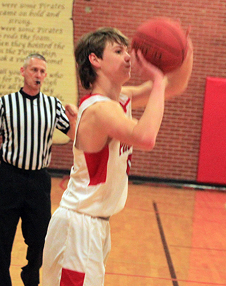 The Pirates got off to a rocky start in the game as they fell behind 9-13 after one quarter and 23-34 at halftime. Some of that may be in part due to not having point guard Kyle Schwartz who was out with a knee injury. Wyatt Ross had to take over point guard duties/ The Pirates made some adjustments at halftime and came out and outscored the Rams 18-9 in the third quarter to cut the lead to just 2 at 41-43. They took the lead early in the fourth quarter and outscored the Rams 17-10 to pull out a 58-53 win. Lee Forsmann led the team with 21 points and 12 rebounds. Zach Rambo added 20 points with Lane Schumacher scoring 11 and Wyatt Ross, Shane Hanson and Morgan Poxleitner had 2 points each. Prairie’s C team lost a 2-quarter game to the Rams’ JV 12-20. Prairie 9 14 18 17 -58 C.V. 13 21 9 10 -53 Prairie-Ross 0, 2-2, 2; Rambo 6, 7-9, 20; Schumacher 4, 0-0, 11; Hanson 1, 0-0, 2; Forsmann 7, 7-13, 21; Poxleitner 1, 0-0, 2. 3-pointers-Schumacher 3, Rambo. C.V.-Lan. Schlieper 7, 1-1, 17; Anderson 5, 0-0, 12; Curtis 4, 1-2, 10; Lat. Schlieper 5, 0-0, 10; Miconi 1, 0-1, 2; Mossman 1, 0-0, 2. 3-pointers-Lan. Schlieper 2, Anderson 2, Curtis. Vs. Potlatch