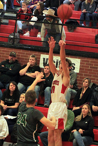 Lane Schumacher shoots from 3-point range against Potlatch.Vs. C.V.