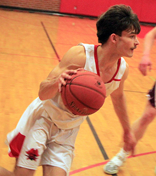 Lee Forsmann shoots for 3 against Kamiah. Also shown is Zach Rambo.![]() Zach Rambo started the scoring with a 3-pointer but Kamiah answered with a pair of baskets. Rambo scored again and Lee Forsmann added a basket for a 7-4 lead. Rambo added 2 more baskets in the quarter as he went 4 for 4 and Forsmann added a putback as Prairie took a 13-9 lead. Shane Hanson scored off a feed from Wyatt Ross to close out the quarter with Prairie up 15-9 after hitting 7 of 9 shots from the field. Forsmann scored a putback to open the second quarter and give Prairie a 17-9 lead. After that the offense dried up for the Pirates as they made just 2 of 12 shots in the quarter. Kamiah’s Luke Krogh sank a pair of 3’s and Kamiah freshman David Kludt scored to tie the game. Rambo hit a 3 with 1:51 left to give Prairie back the lead but a 3 by Everett Skinner and a basket by Krogh gave Kamiah a 20-22 halftime lead. In the third quarter, Rambo, who was 5 for 5 in the first half, missed his first 4 shots and hit just 1 of 8 in the third quarter. As a team Prairie was 2 for 11 in the quarter as Kamiah outscored them 4-12 to take a 24-34 lead into the fourth period. Kamiah led by as many as 14 in the fourth quarter at 29-43. Prairie then started to rally back with a 9-3 run that got the lead down to 6 t 38-44. Rambo made a free throw after a technical foul for taunting on Kamiah and then added a basket. Lane Schumacher and Rambo each hit a 3-pointer to pull the Pirates within 6 with 53 seconds left. That was it though as Kamiah scored the final 4 points of the game at the free throw line. Rambo wound up with 20 points to lead the Pirates while Forsmann scored 10 with 13 rebounds. Schumacher scored 4 and Ross and Hanson added 2 each. Kamiah had a 25-31 edge on the boards. Schumacher had 3 steals and Ross had 3 assists. Prairie was 15 for 45 from the field, 33%, and 4 for 8 at the line, 50%. Kamiah was16 for 37 from the field, 43%, and 9 for 17 at the line, 53%. Prairie is now 13-4 on the season and 9-4 in league play with 1 league game left to play at Logos on Friday. With the win, Kamiah clinched the #2 seed into District. Prairie has the tiebreaker against Logos, so win or lose on Friday, Prairie will be the #3 seed and Logos #4. In the JV game Prairie trailed most of the way but pulled out a 33-32 win at the buzzer. It was a low scoring first quarter with Prairie leading just 4-3 at the end of the period. Matt Wemhoff and Morgan Poxleitner had Prairie’s 2 baskets. In the second quarter Trenton Lorentz scored a putback and Colton McElroy scored after a steal for an 8-3 lead with 4:37 left in the half. Kamiah then took over and scored 8 straight points to take an 8-11 lead at the break. Prairie tied the scored twice in the third quarter. They tied it at 12-12 on a basket by Noah Behler and again at 14-14 on 2 free throws by Poxleitner. After a 3 by Kamiah, Poxleitner and Benny Elven each scored to give Prairie an 18-17 lead with 2:08 left in the period. Kamiah then scored 7 straight to take an 18-24 lead into the fourth quarter. McElroy scored after grabbing a long rebound and Elven scored inside to cut the deficit to 2 at 22-24. Kamiah scored twice to lead 22-28 but a basket by Behler, a free throw by Lorentz and a drive for a lay-up by Weston Riener cut the lead to 1 at 27-28 with 3:52 left. Kamiah outscored Prairie 4-2 to lead 29-32 with 33 seconds left. Wemhoff scored on a drive with 21 seconds left and Prairie then quickly fouled. Kamiah missed the 1 and 1 attempt with McElroy grabbing the rebound. After a missed shot went out of bounds under the basket with 3 second left, Prairie set up an inbounds play where Wemhoff got the ball in to Behler for a lay-up just before the buzzer sounded giving Prairie a 1-point, 33-32 win. Poxleitner led the JV’s in scoring with 8 points. Wemhoff and Behler scored 6 each. McElroy and Elven scored 4 each. Lorentz scored 3 and Riener scored 2. Rebounding was even up at 44-44. Wemhoff had 10 to lead the Pirates with Behler adding 9 rebounds and Lorentz 8. Wemhoff had 5 steals while McElroy had 4. McElroy had 4 assists. The JV’s were 15 for 53 from the field, 28%, and 3 for 8 at the line, 38%. Kamiah was 13 for 55 from the field, 24%, and 3 for 10 at the line, 30%. Prairie 15 5 4 14 -38 Kamiah 9 13 12 14 -48 Prairie-Ross 1-7, 0-1, 2; Rambo 8-18, 1-2, 20; Schumacher 1-9, 1-2, 4; Hanson 1-2, 0-1, 2; Forsmann 4-7, 2-2, 10; Poxleitner 0-2, 0-0, 0; Wemhoff 0-0, 0-0, 0. 3-pointers-Rambo 3, Schumacher. Kamiah-Krogh 6-9, 0-0, 14; Kludt 3-5, 2-5, 8; Skinner 3-8, 4-6, 13; Cox 3-9, 1-2, 7; Mercer 2-7, 2-4, 6; Wilkins 0-0, 0-0, 0. 3-pointers-Skinner 3, Krogh 2. ![]() ![]() Wyatt Ross drives toward the basket against Kamiah.