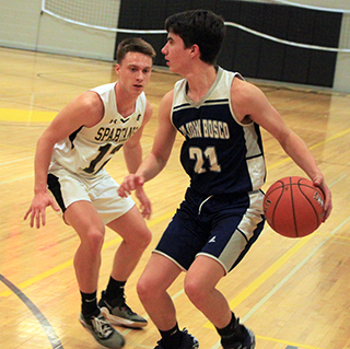 In the game at Timberline the Spartans scored first on a 3-pointer but Torry Chmelik answered with a 3 of his own to tie it. The Spartans then scored 8 straight points to take a 3-11 lead. A basket by Luke Stubbers and another 3 by Chmelik cut the deficit to 3. After a free throw by Timberline, Levi Wassmuth scored inside to make it 10-12 at the end of the first quarter. Chmelik then gave the Patriots their first and unfortunately only lead of the game at 13-12 with his third 3-pointer. Timberline answered with 5 straight points. A 3 by Cody Wassmuth cut the deficit to 1 at 16-17 but Timberline then scored the final 9 points of the half to take a 16-26 lead at the break. The third quarter saw the two teams basically trade scores as Timberline outscored the Patriots 9-10 to take a 25-36 lead into the fourth quarter. Clay Weckman scored 4 in the quarter for the Patriots while Stubbers and Cody Wassmuth added 2 each and Chmelik scored 1. Timberline scored 2 free throws to open the fourth quarter then the Patriots put together a rally. Weckman scored 2 free throw and then stole the ball and scored a basket. Cody Wassmuth scored a pair of baskets to complete an 8-0 run that cut the deficit to 5 at 33-38 with 4:11 to play. The Patriots then went ice-cold as they scored just 2 points the rest of the way on a basket by Cody Wassmuth with 15 seconds left. Timberline meanwhile scored a basket and 2 free throws in the final 4 minutes as they mostly worked the clock. Cody Wassmuth led the Patriots in scoring with 11 points while Chmelik added 10. Weckman scored 8, Stubbers 4 and Levi Wassmuth 2. Timberline controlled the boards, 22-40. Levi Wassmuth led the Patriots with 7 rebounds. Chmelik had 5 steals and 3 assists while Weckman had 3 steals and 3 assists. Levi and Cody Wassmuth each added 3 steals. The Patriots were 13 for 50 from the field, 26%, and 3 for 10 at the line, 30%. Timberline was 15 for 31 from the field, 48%, and 8 for 13 at the line, 62%. St. John Bosco 10 6 9 10 -35 Timberline 12 14 10 6 -42 SJB-C. Wassmuth 5-12, 0-1, 11; Stubbers 2-7, 0-1, 4; Weckman 3-14, 2-4, 8; Chmelik 3-13, 1-2, 10; L. Wassmuth 1-3, 0-0, 2; Kaschmitter 0-2, 0-2, 0; Hoene 0-0, 0-0, 0. 3-pointers-Chmelik 3, C. Wassmuth. Timberline-Brown 4-9, 2-2, 13; West 1-5, 0-0, 2; M. Nelson 0-2, 1-3, 1; Hunter 1-4, 0-1, 2; G. Christopherson 7-11, 5-6, 20; J. Nelson 0-0, 0-0, 0; J. Christopherson 2-3, 0-1, 4. 3-pointers-Brown 3, G. Christopherson. Vs. Timberline