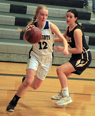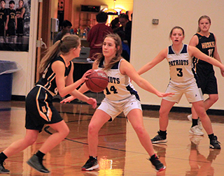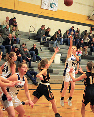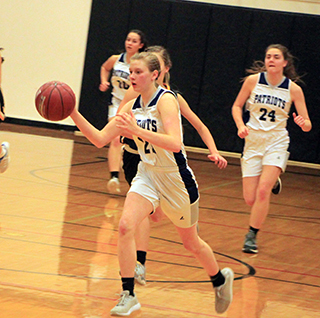the lead for good and built on their lead throughout the game.Bosco’s only other point of the first quarter came on a free throw by Warren as Kendrick’s defense forced 15 turnovers allowing the Tigers to take a 3-10 lead by the end of the opening period. Kendrick scored the first 8 points of the second quarter to take a 3-18 lead. Prigge scored 2 free throws to break the dry spell. The Patriots got a basket from Wassmuth and 2 free throws each from Dani Sonnen and Warren as they played almost even the rest of the quarter against Kendrick. Kendrick led 11-28 at the half. Kendrick scored the first 4 points of the second half to take an 11-32 lead. The Patriots then put together a run where they outscored the Tigers 9-4. Wassmuth scored a free throw, Prigge 2 baskets and Chmelik and Warren a basket each as they cut the lead to 20-36. Kendrick then made a pair of 3’s to end the third quarter and push their lead back to 22 at 20-42. Scoring was even in the final quarter as each team scored just 1 basket and 3 free throws. Prigge and Warren each scored 8 points to lead the Patriots. Wassmuth scored 4. Dani Sonnen and Chmelik scored 2 each and Waters scored 1. Kendrick was led by Erin Morgan who had 19 points, 16 in the first half. Kendrick had a 39-46 edge on the boards. Prigge had 14 rebounds to lead the Patriots. Prigge also led in steals with 4 while Waters had 3. Waters had 3 assists to lead the team. Bosco was 7 for 36 from the field, 19%, and 11 for 19 at the line, 58%. Kendrick was17 for 71 from the field, 24%, and 9 for 11 at the line, 82%. The Patriots are now 5-10 on the season. St. John Bosco 3 8 9 5 -25 Kendrick 10 18 14 5 -47 SJB-Warren 2-7, 4-7, 8; D. Sonnen 0-2, 2-4, 2; Waters 0-4, 1-2, 1; Wassmuth 1-4, 2-4, 4; Prigge 3-17, 2-2, 8; Chmelik 1-2, 0-0, 2; R. Sonnen 0-0, 0-0, 0. 3-pointers-none. Kendrick-Rose Stewart 2-8, 0-0, 4; Stacy 0-5, 2-2, 2; Tweit 3-14, 4-4, 12; Morgan 8-14, 3-4, 19; Taylor 2-12, 0-0, 6; Ruby Stewart 2-12, 0-0, 4; Silflow 0-3, 0-0, 0; Heimgartner 0-4, 0-0, 0. 3-pointers-Tweit 2, Taylor 2. ![]() Julia Wassmuth leads a break against Highland after a turnover. Also shown are Raylie Warren, 10, and Jade Prigge, 24. ![]() Dani Sonnen drives past a Highland defender. ![]() Sarah Waters and Noelle Chmelik play defense against Highland. ![]() Julia Wassmuth puts up a shot against Highland. Also shown are Sarah Waters, 14, and Noelle Chmelik, 3. Patriots lose twice to Timberline The St. John Bosco Patriots played a pair of make-up games against Timberline and lost them both. On Wednesday, Feb. 2, they traveled to Weippe and lost to the Spartans 33-49. On Monday, Feb. 7, the Spartans visited Cottonwood and Timberline won 46-51. At Timberline