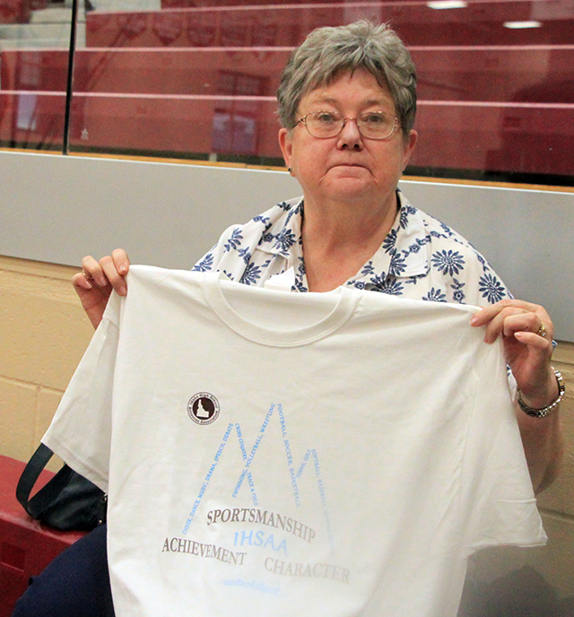 Bertie Forsmann was awarded the Sportsmanship T-shirt by coach Lori Mader and the team prior to the Notus game.